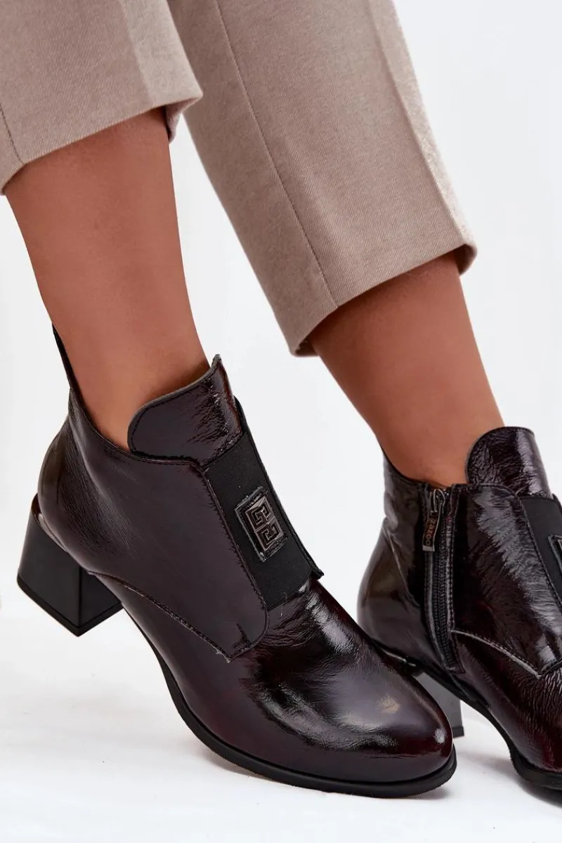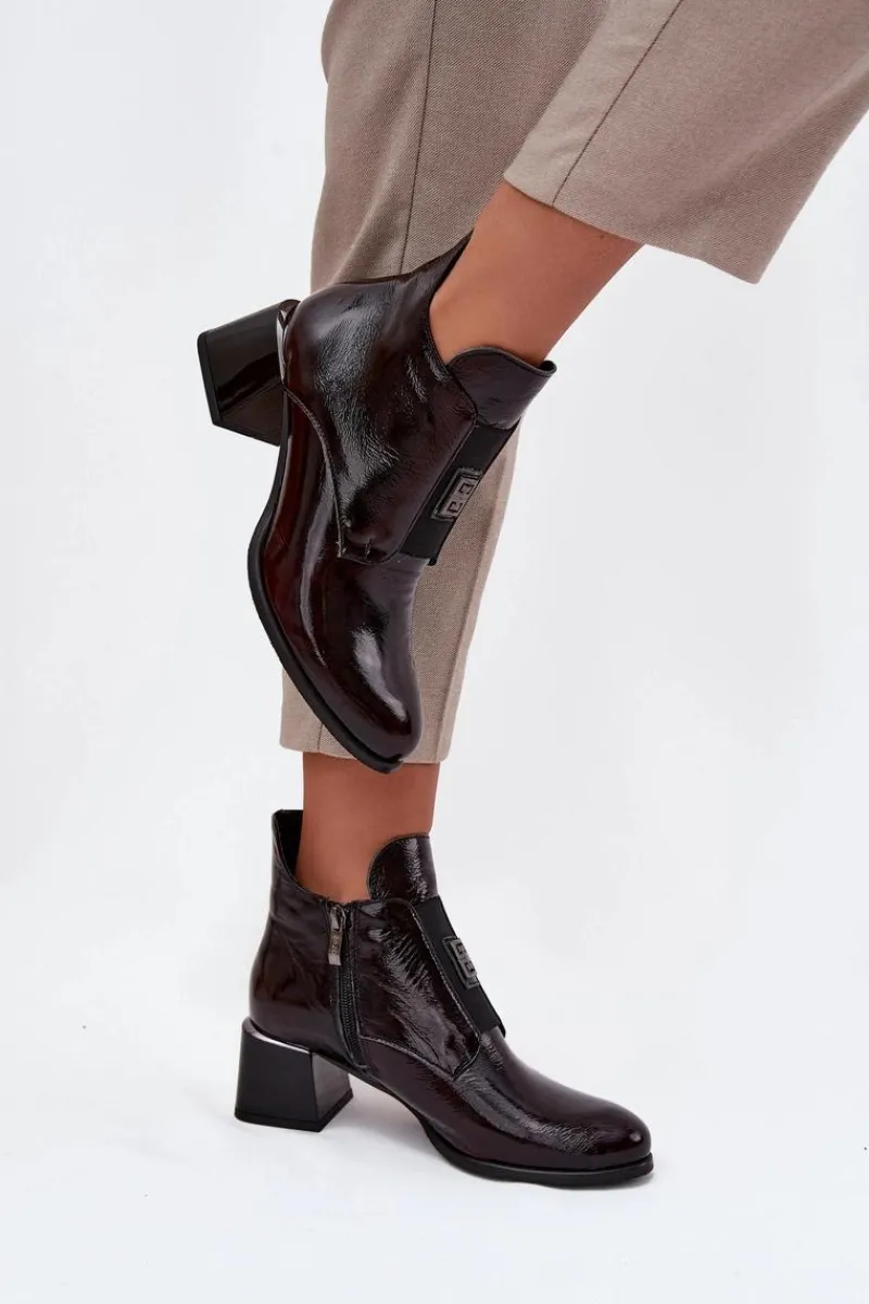 Botki ze skóry naturalnej to połączenie elegancji i wygody. Osadzone na stabilnym obcasie typu klocek, zapewniają komfort przez cały dzień. Wnętrze jest ocieplane, co gwarantuje ciepło w chłodniejsze dni. Z przodu buta znajduje się elastyczna wstawka, która nie tylko ułatwia zakładanie, ale również dodaje subtelnego, modnego akcentu. Zapinane na zamek. Dodatkowo mały ozdobny detal sprawia, że te botki wyróżniają się oryginalnym stylem. Koniecznie powinnaś je mieć! Przy wyborze rozmiaru prosimy kierować się tabelą rozmiarów.