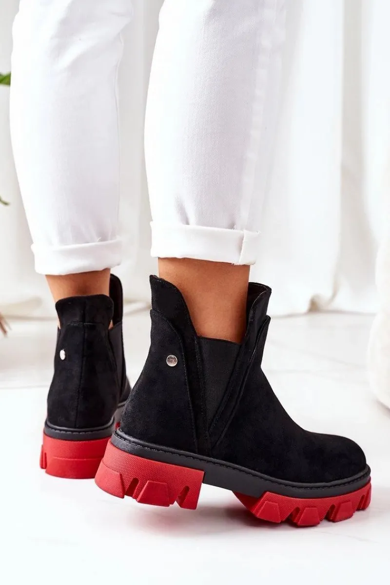 Sztyblety damskie wykonane z eko zamszu. Wnętrze botków ocieplone jest miłym w dotyku kocem obuwniczym. Przy wyborze rozmiaru prosimy sugerować się tabelą rozmiarów.