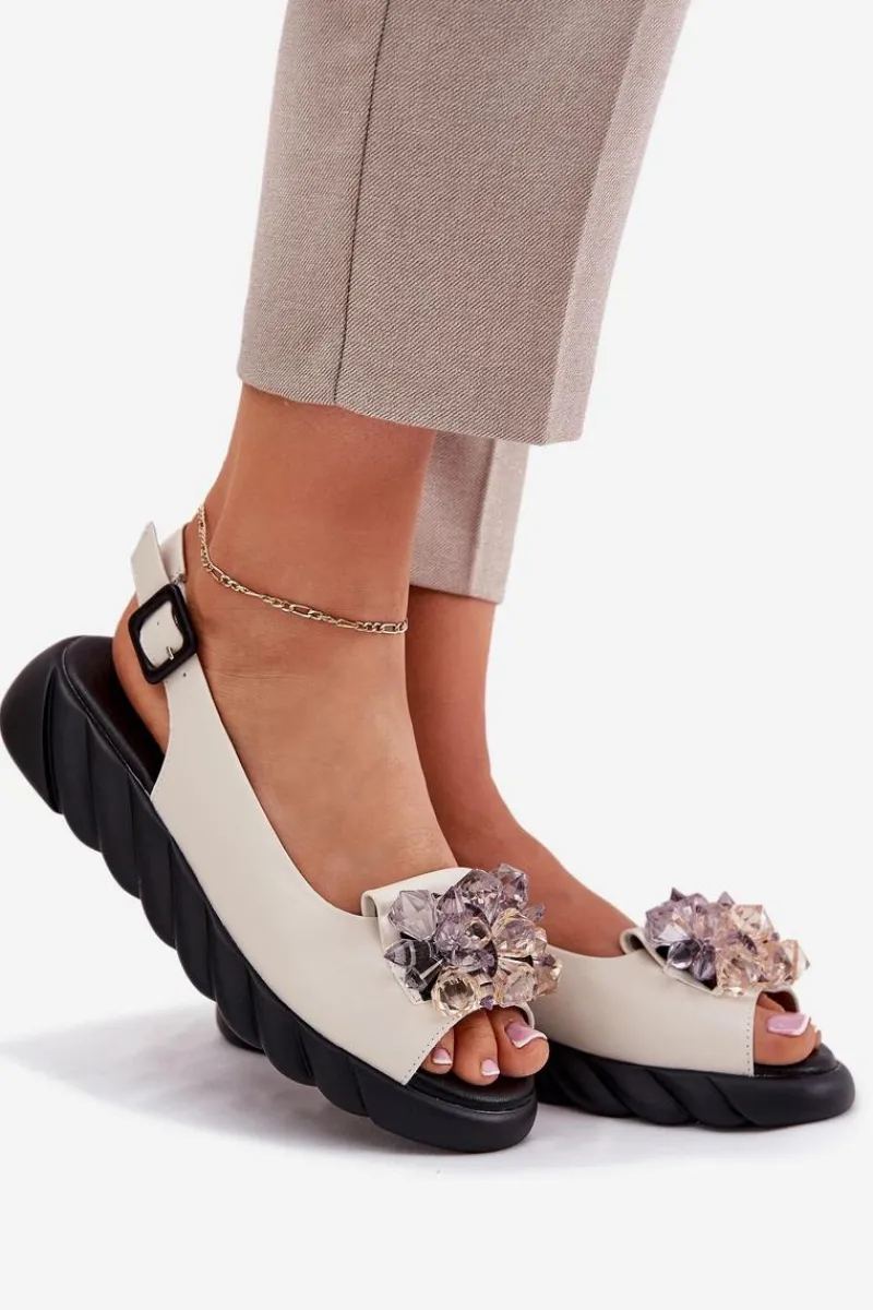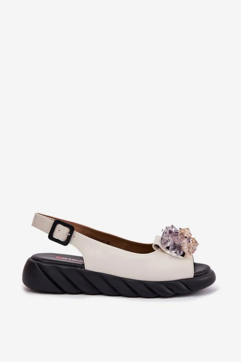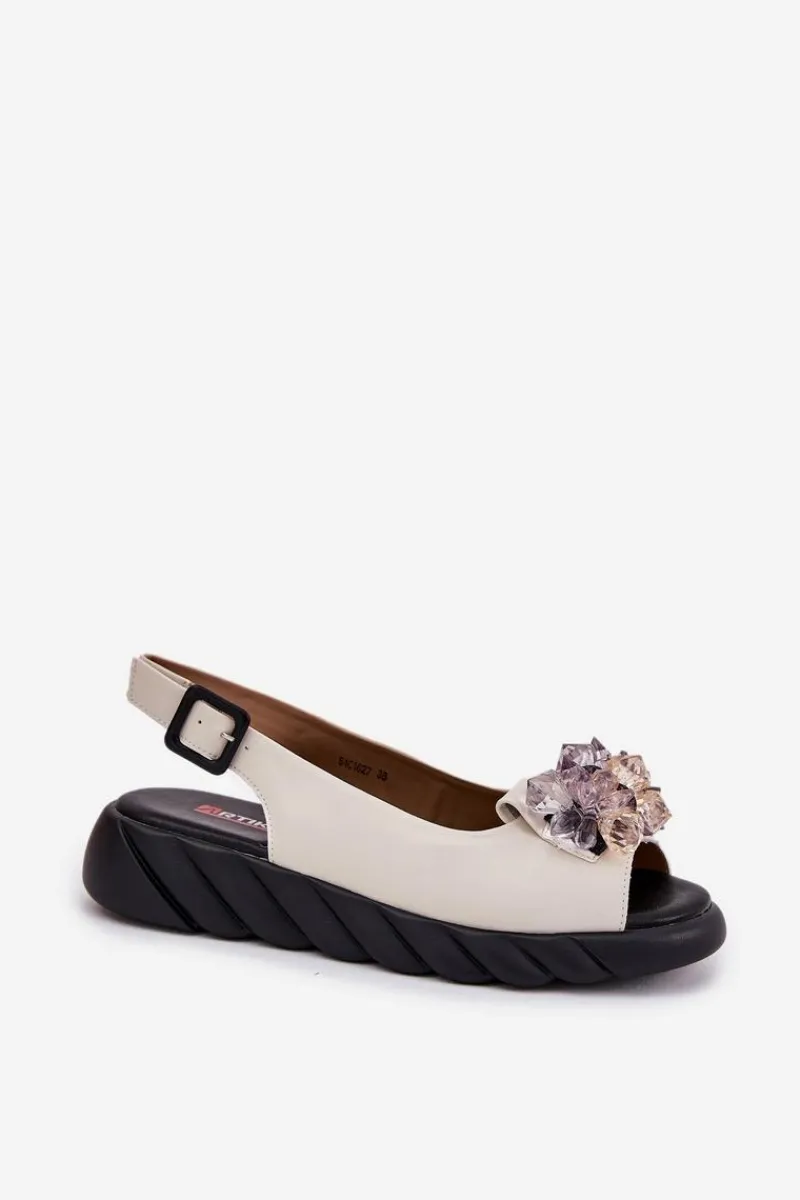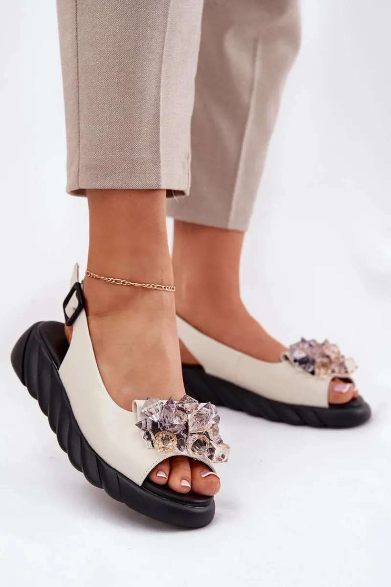 Online Artiker Skórzane Sandały Damskie Z Kryształkami 54C1627 Beżowe Beżowy