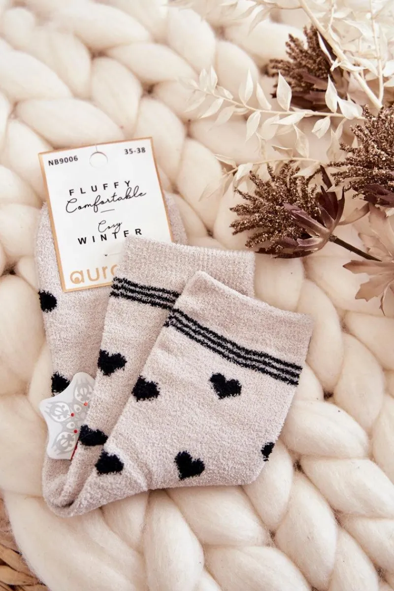 Online Aura.via Damskie Ciepłe Skarpetki W Serca Jasnoszare