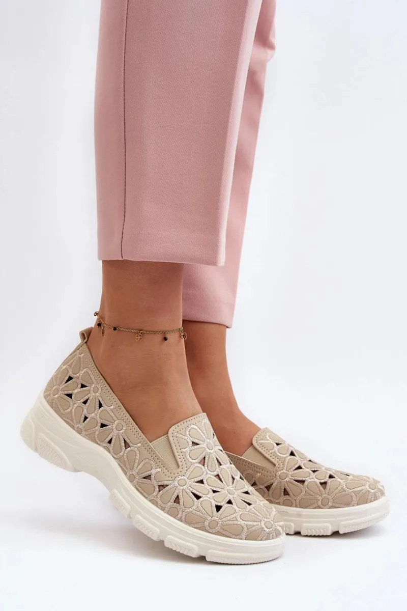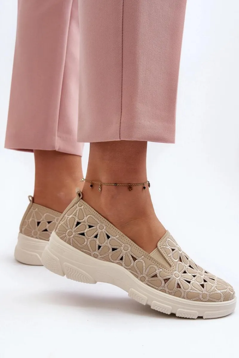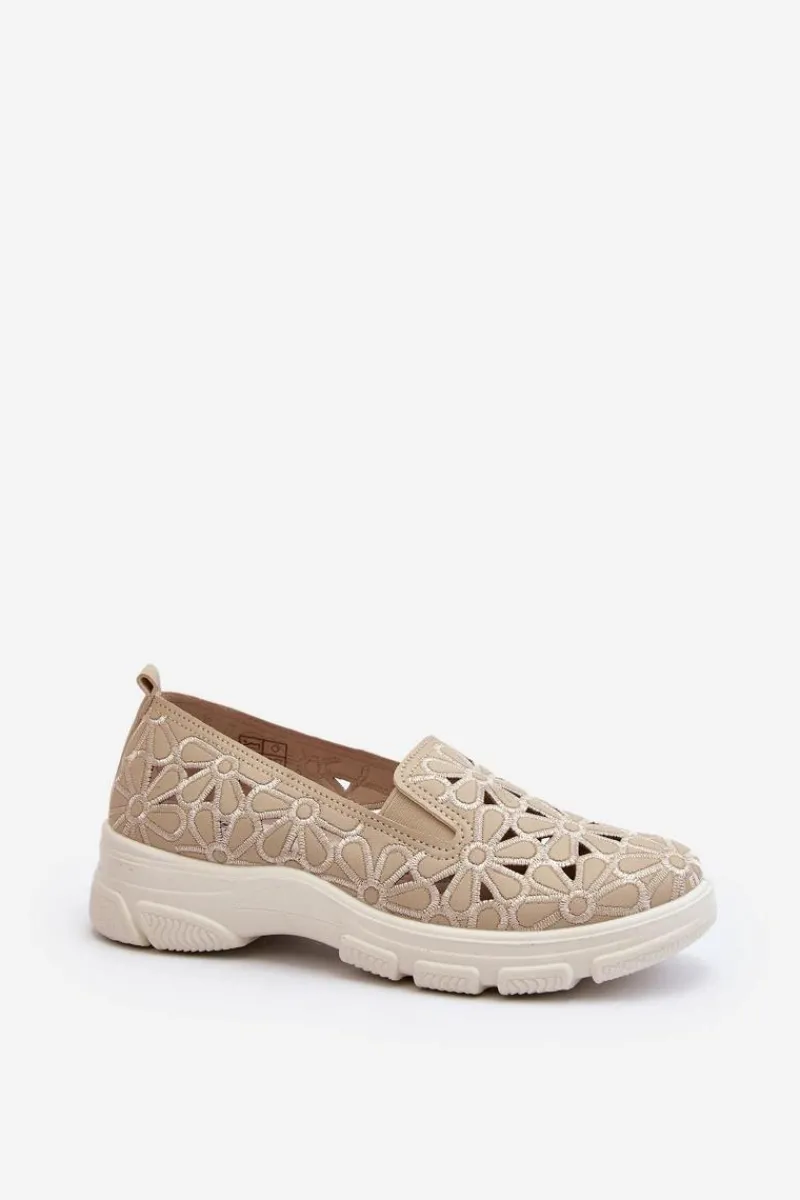 Online Ażurowe Półbuty Damskie Beżowe Emilei Damskie Półbuty Skórzane