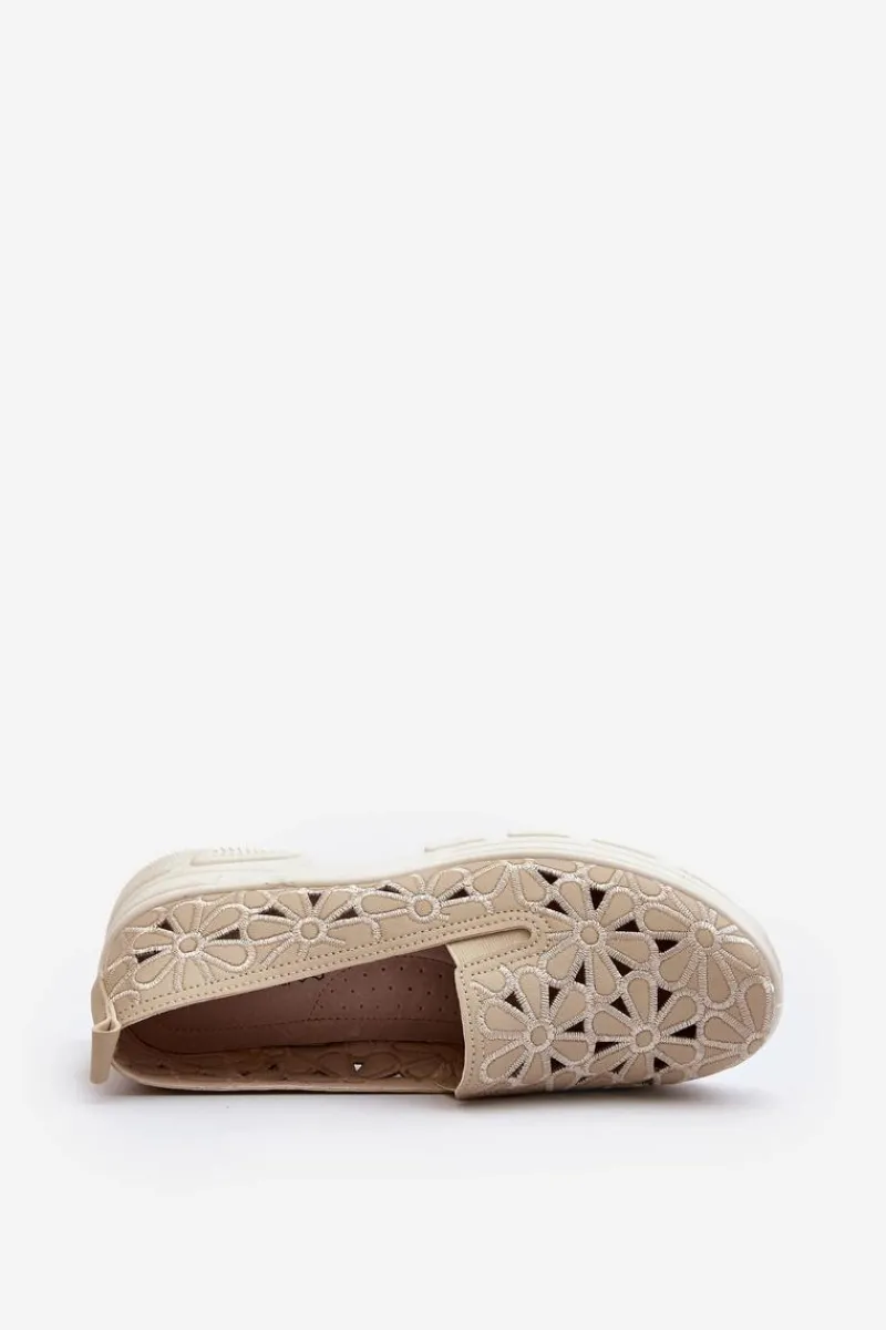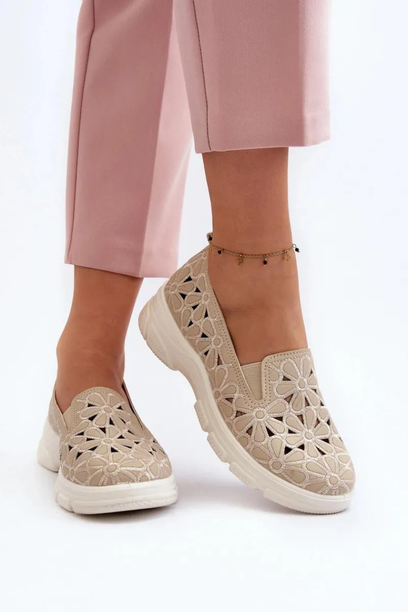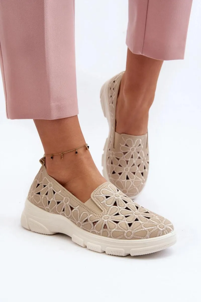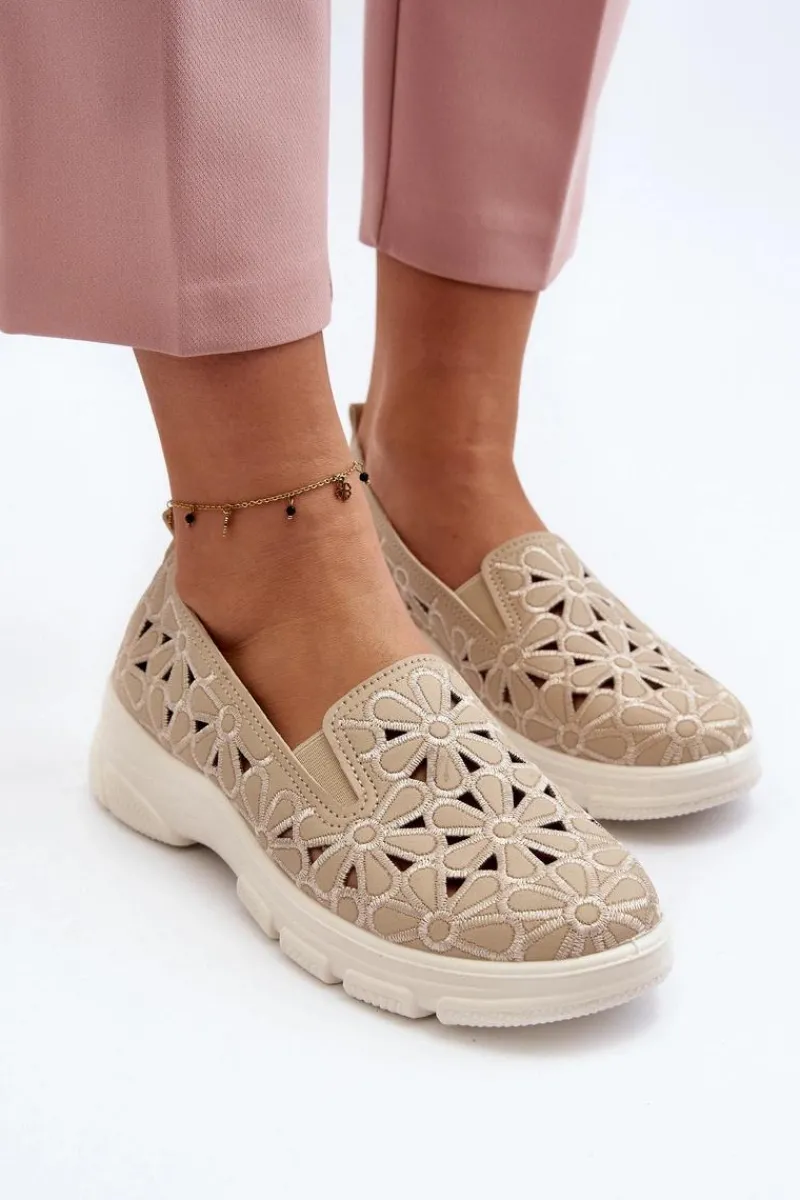 Online Ażurowe Półbuty Damskie Beżowe Emilei Damskie Półbuty Skórzane