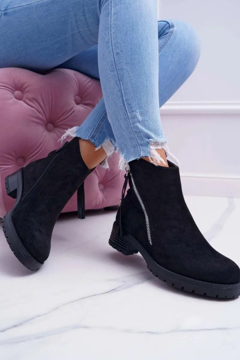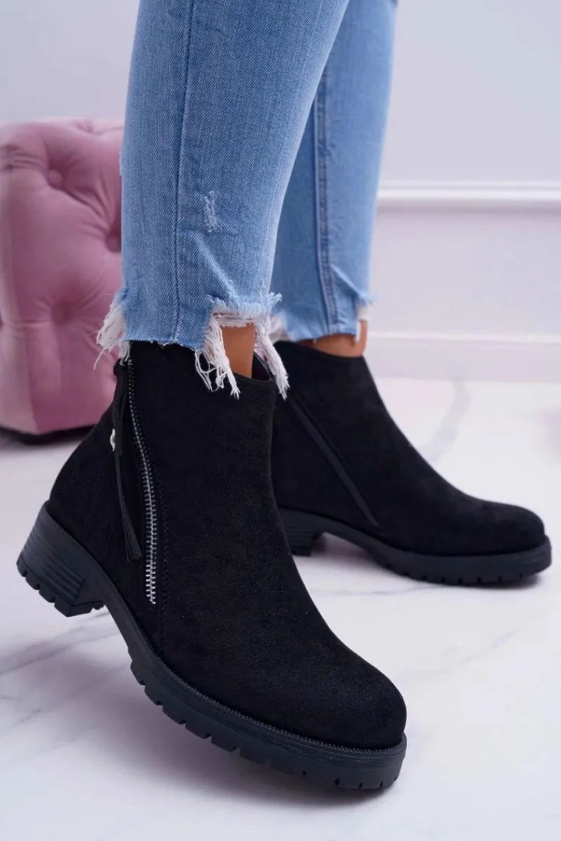 Online Boto Botki Damskie Ciepłe Zamszowe Dwa Suwaki Czarne Ohoo
