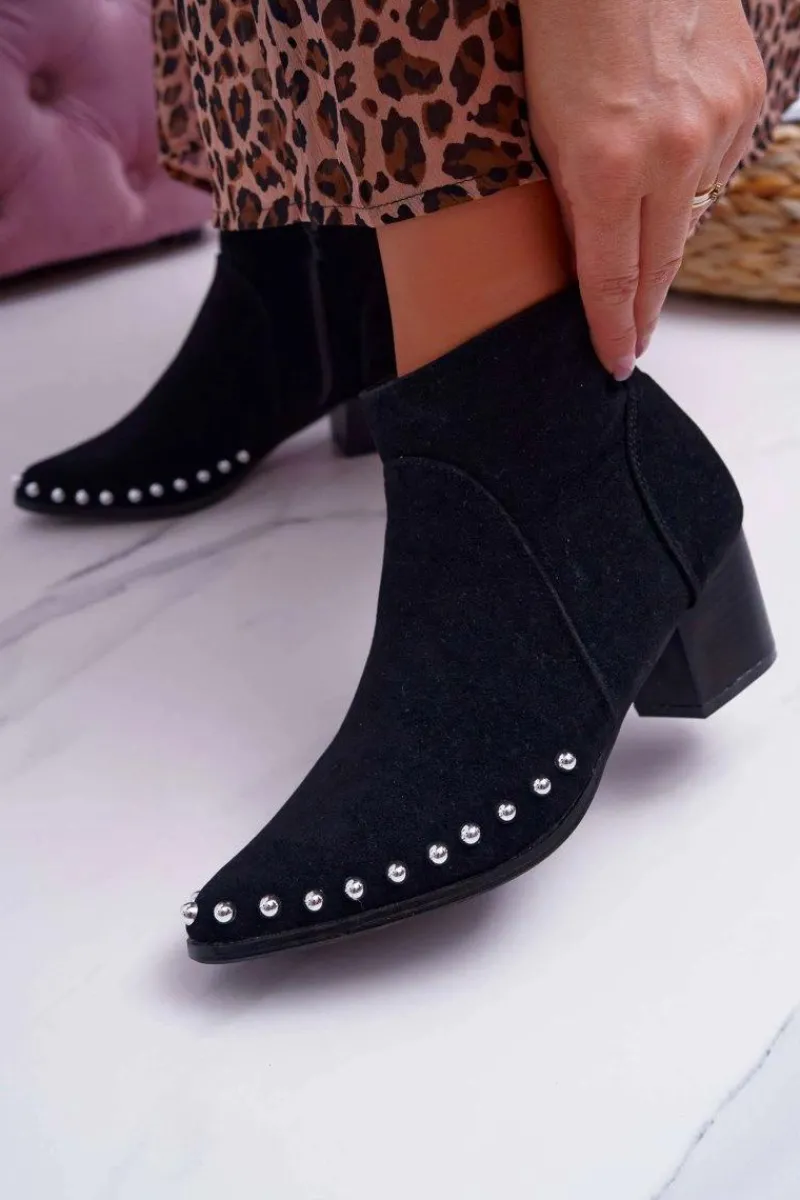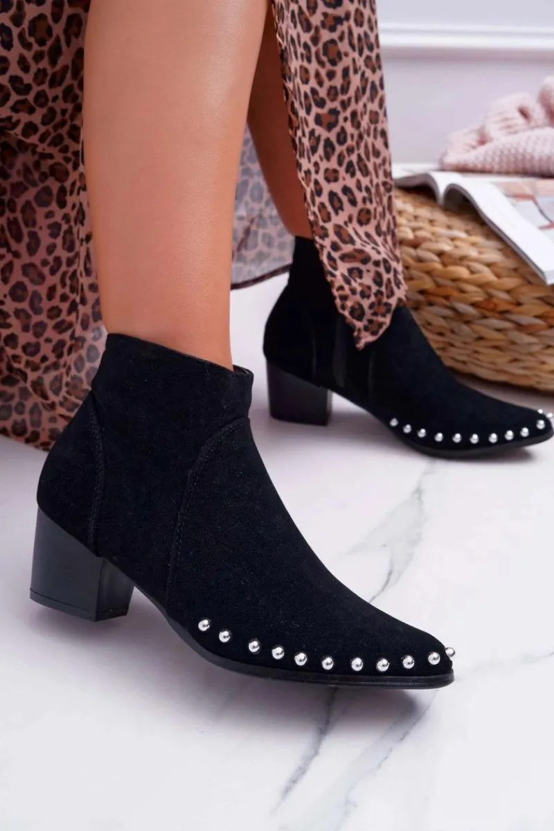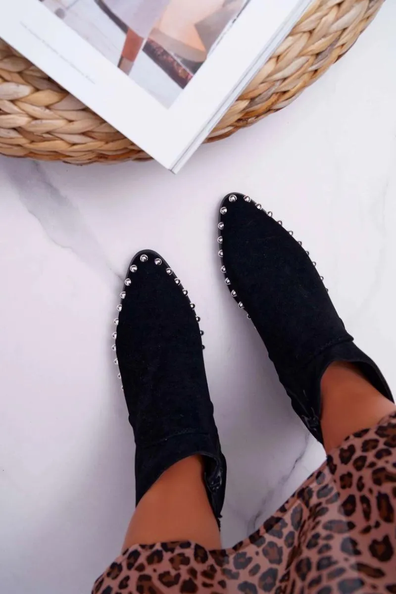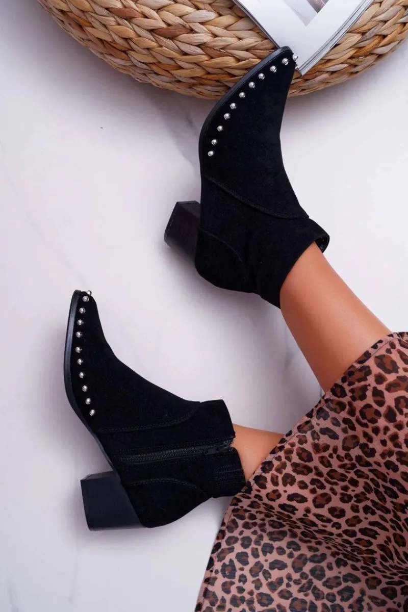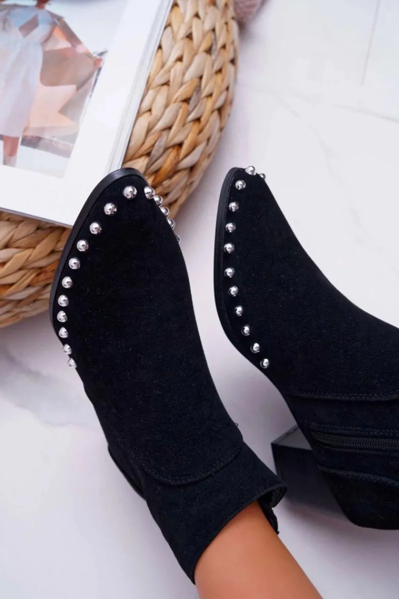 Online Boto Botki Damskie z Dżetami Czarne Sobery