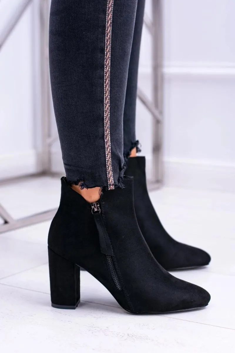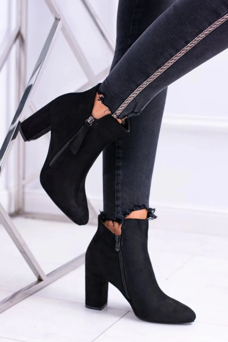 Podczas chłodniejszych dni warto zwrócić szczególną uwagę na buty. Dzięki nim podkreślimy nasze stylizacje a dodatkowo dadzą nam maksimum komfortu w każdej sytuacji. Klasyczne botki z zamkiem z boku. Dodatkowy zamek jest ozdobny. Wnętrze delikatnie ocieplone kocem obuwniczym. Koniecznie sprawdź całą naszą kolekcję sztybletów w super cenach!