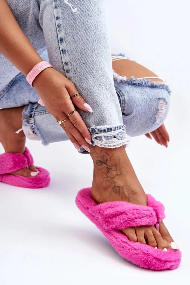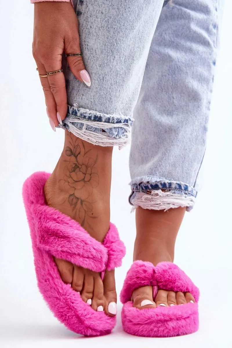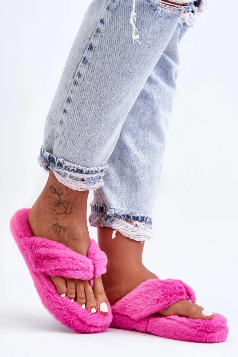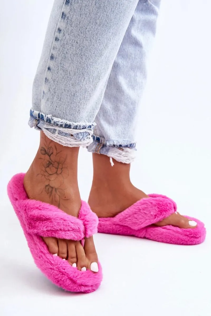 Online Boto Damskie Futrzane Klapki Papcie Fuksja Elma