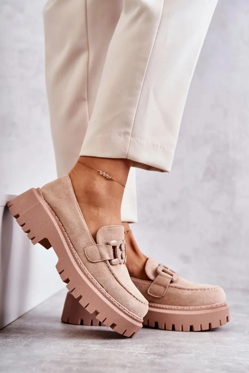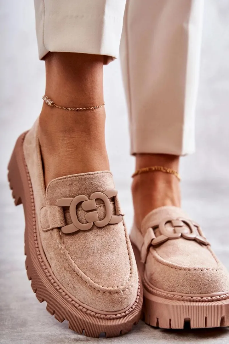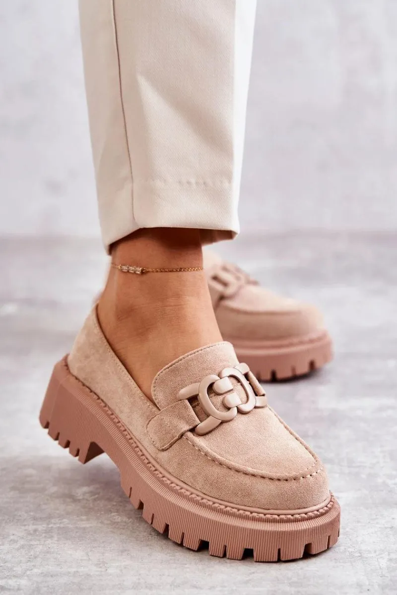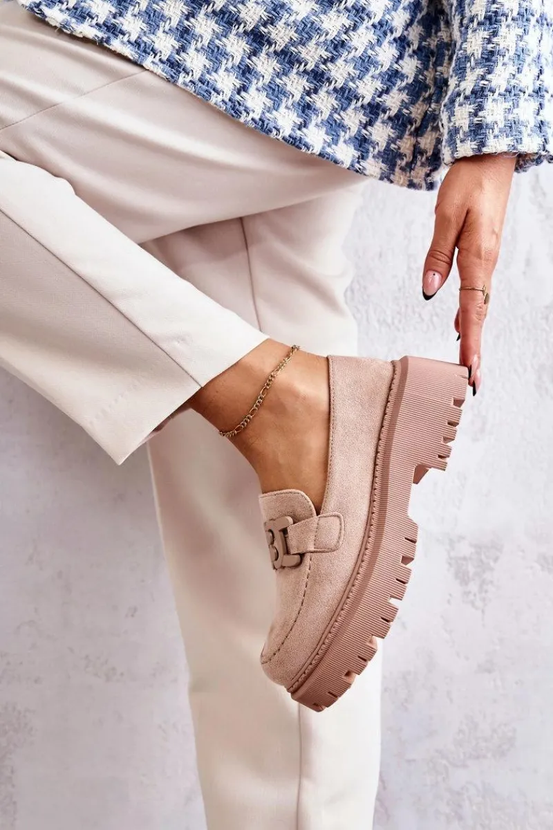 Klasyczne półbuty zostały wykonane z eko zamszu. Na przodzie charakterystyczne zdobienie. Buty te posiadają platformę oraz płaski obcas. Podeszwa ze żłobieniami świetnie odizoluje od nierównego podłoża. Wygodne, a zarazem modne półbuty świetnie sprawdzą się do pracy, na zakupy czy na spotkanie z przyjaciółmi. Miękka wkładka wykonana z eko skóry zapewni komfort podczas użytkowania. Koniecznie musisz je mieć! Przy wyborze rozmiaru prosimy sugerować się tabelą rozmiarów.
