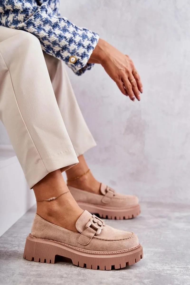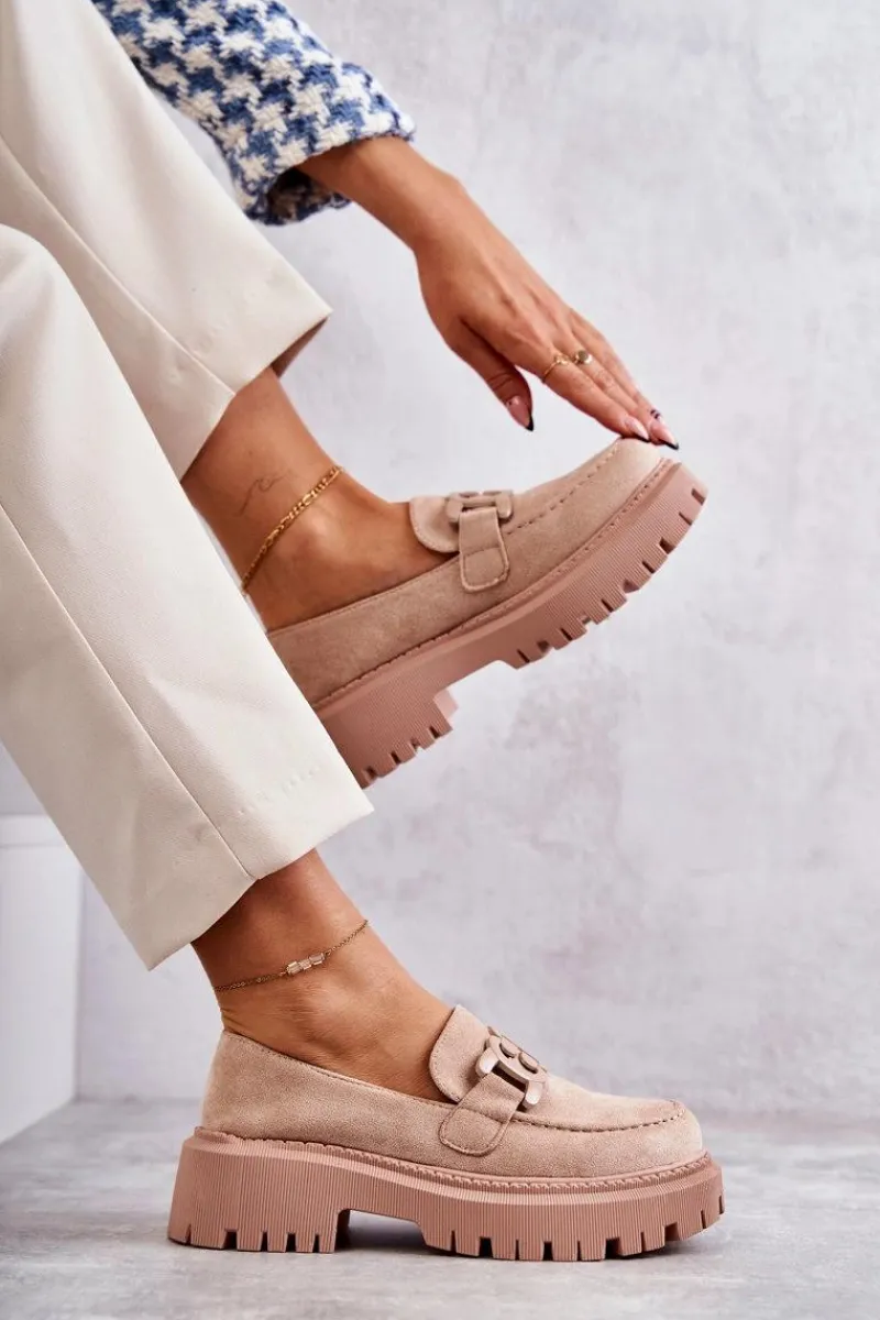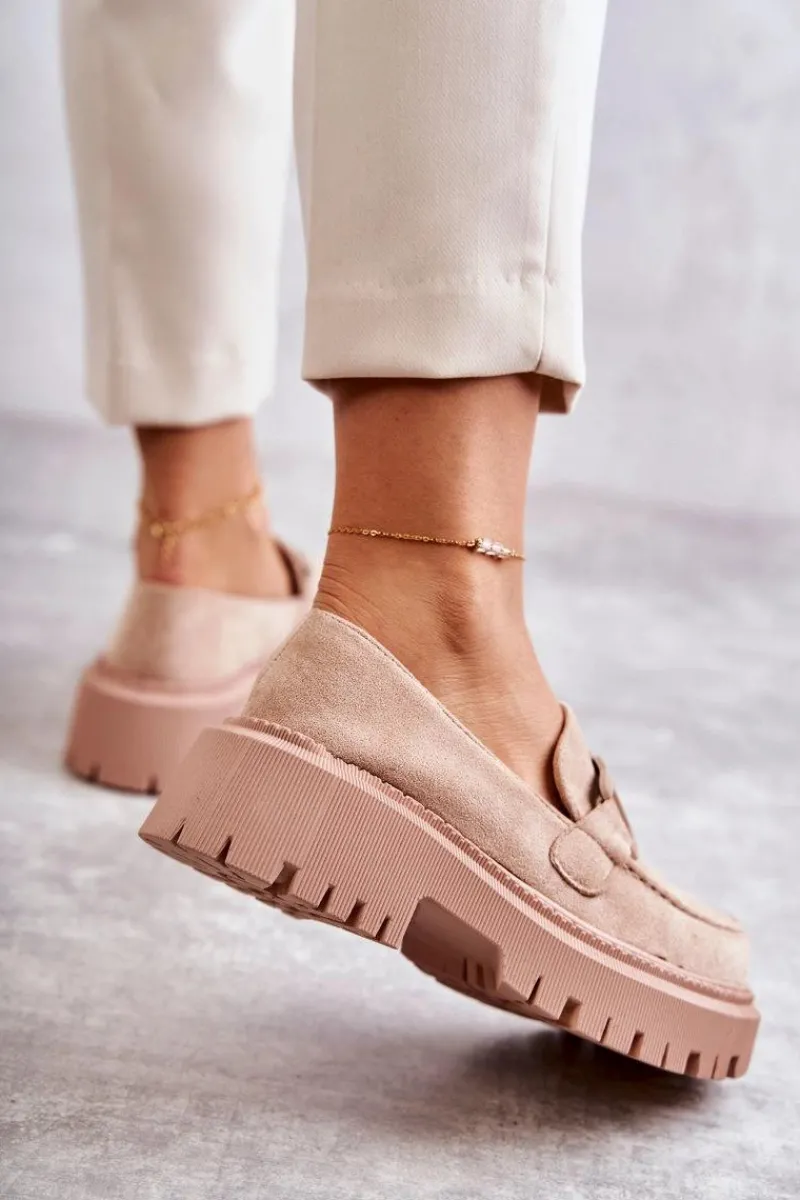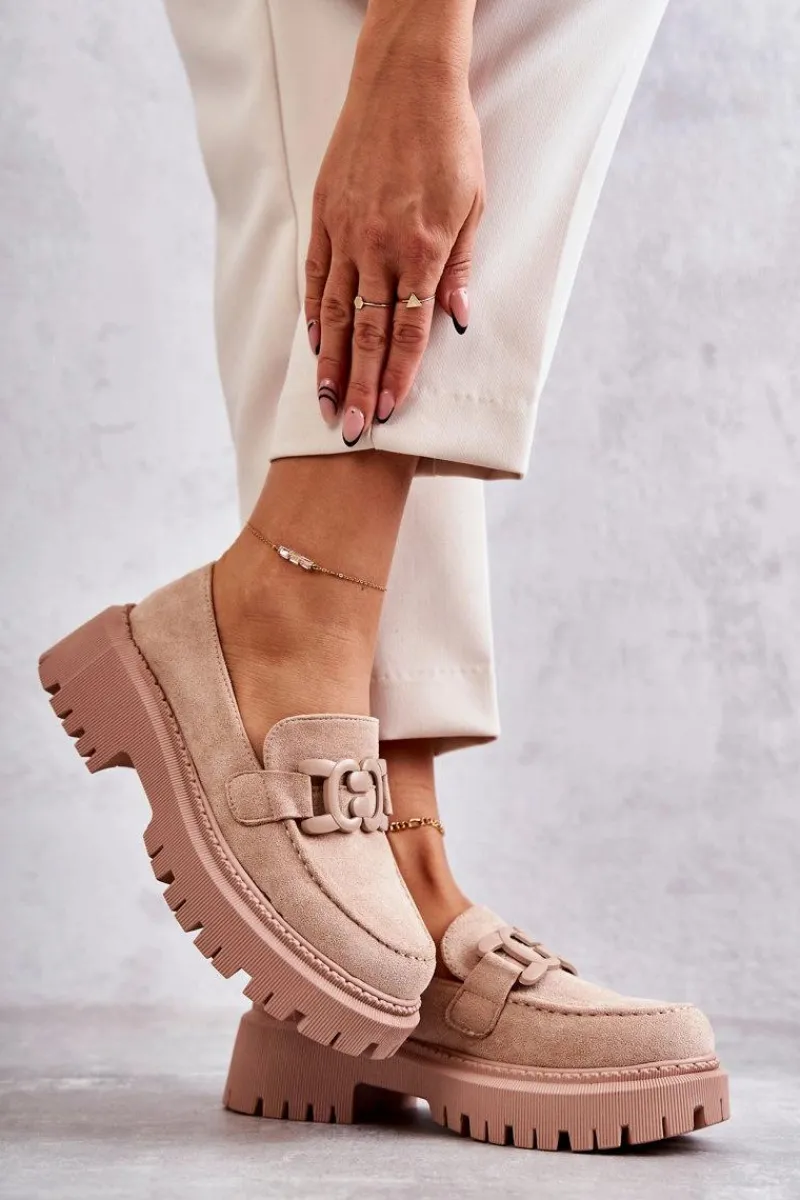 Klasyczne półbuty zostały wykonane z eko zamszu. Na przodzie charakterystyczne zdobienie. Buty te posiadają platformę oraz płaski obcas. Podeszwa ze żłobieniami świetnie odizoluje od nierównego podłoża. Wygodne, a zarazem modne półbuty świetnie sprawdzą się do pracy, na zakupy czy na spotkanie z przyjaciółmi. Miękka wkładka wykonana z eko skóry zapewni komfort podczas użytkowania. Koniecznie musisz je mieć! Przy wyborze rozmiaru prosimy sugerować się tabelą rozmiarów.