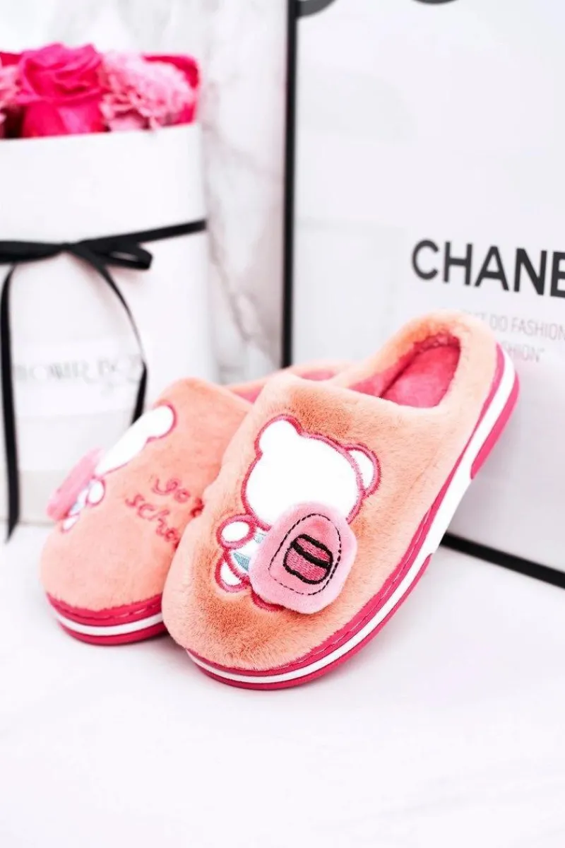 Online Boto Dziecięce Klapki Papcie Z Misiem Różowe Go To School