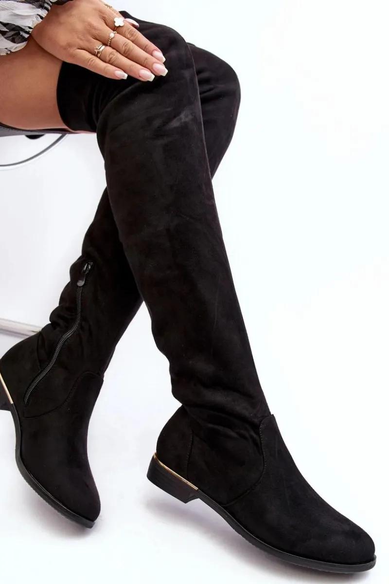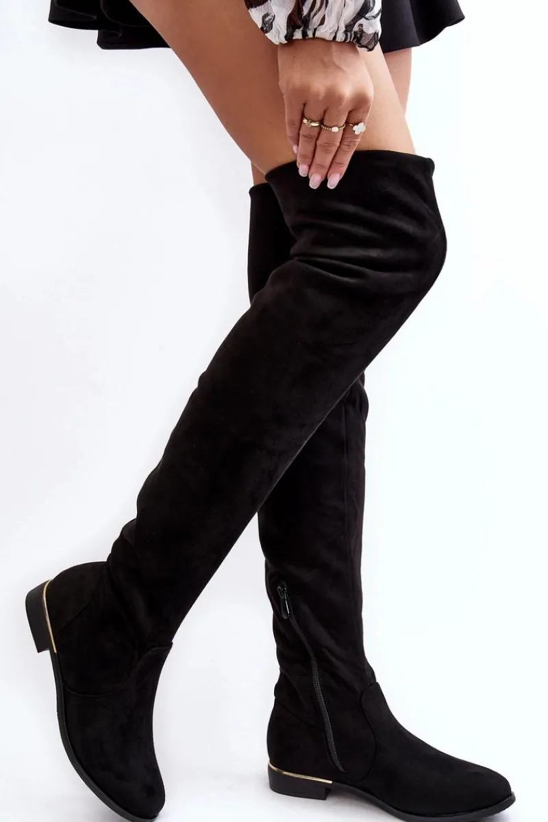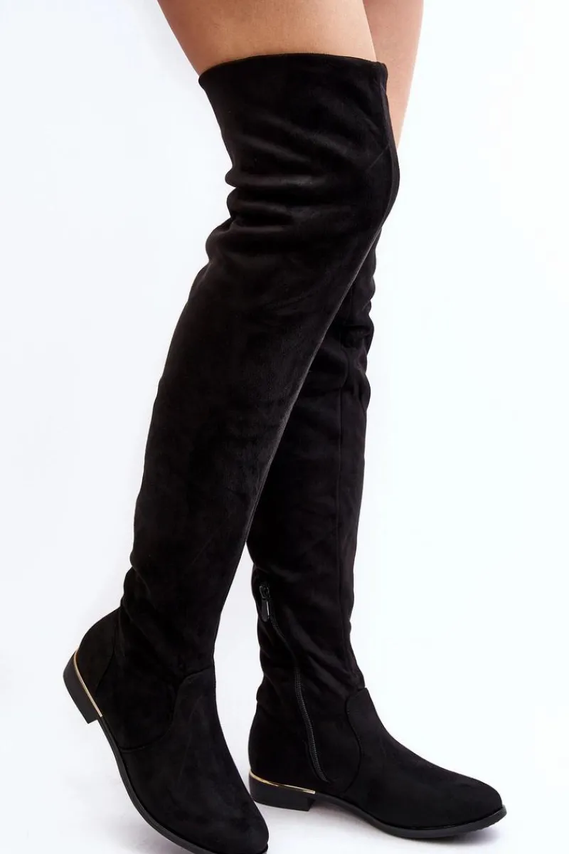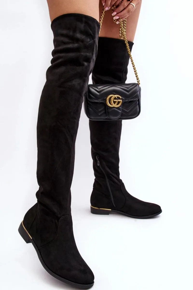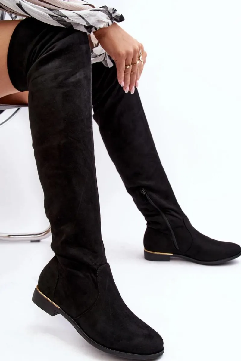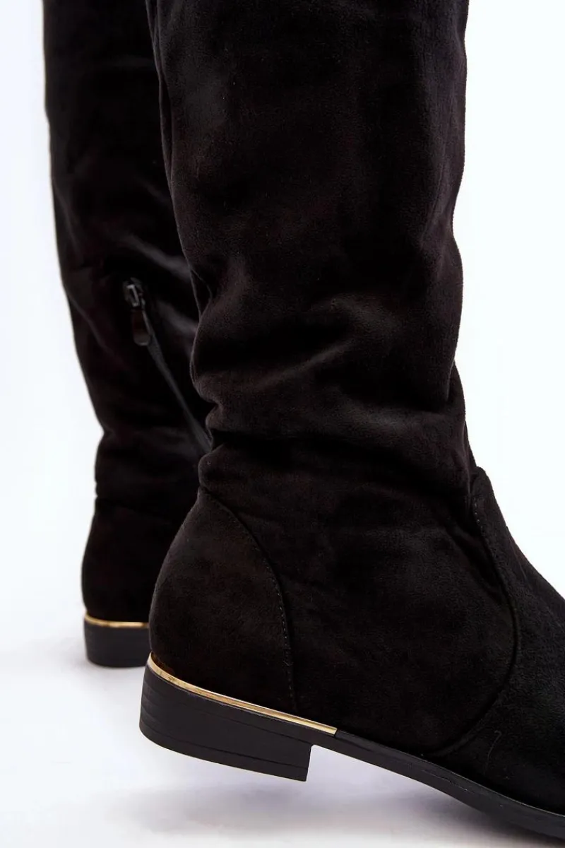 Online Boto Kozaki Damskie Za Kolano Na Płaskim Obcasie Czarne Bikka