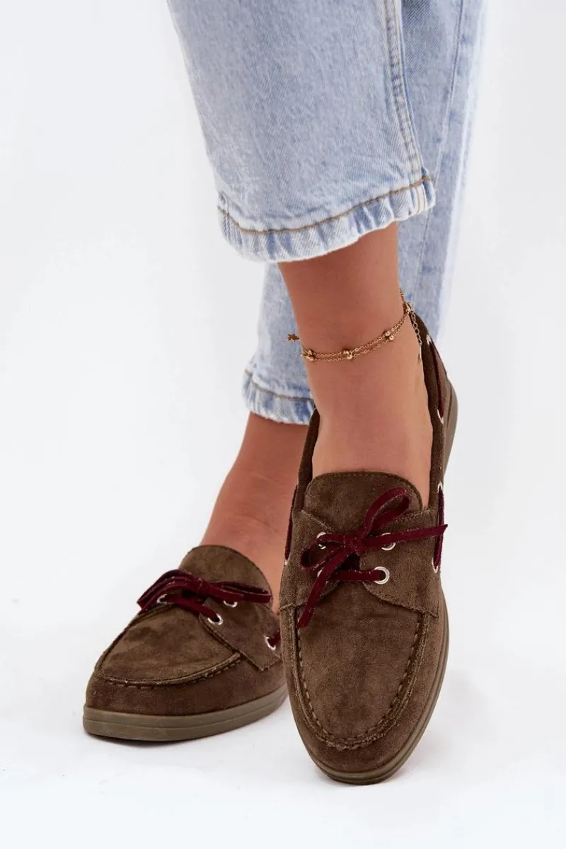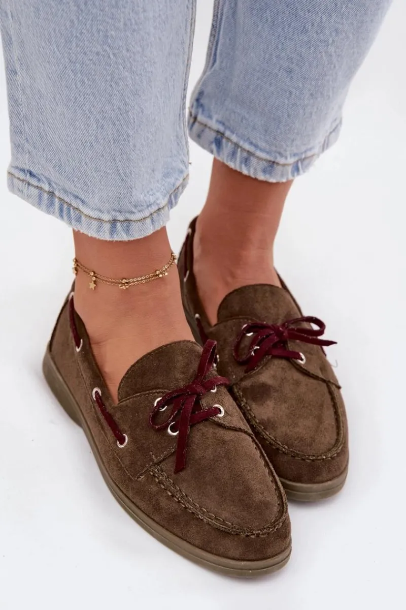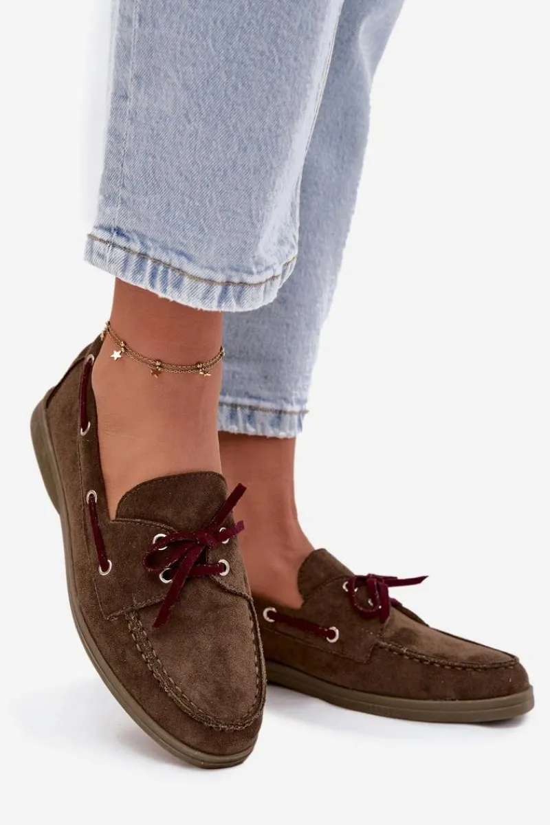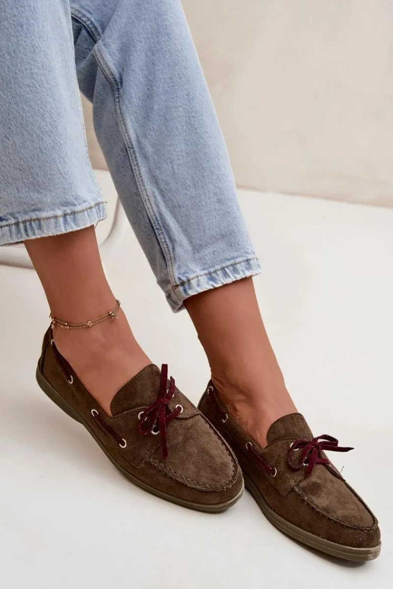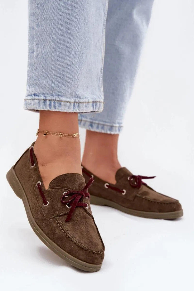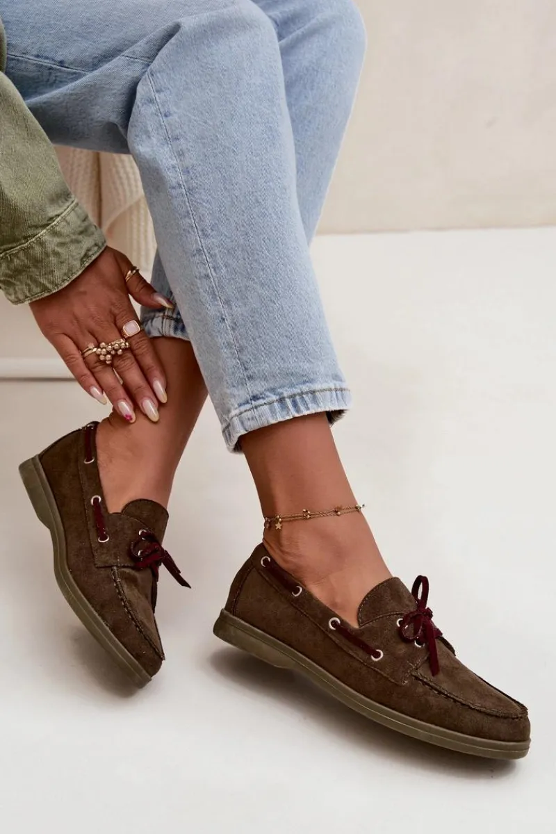Mokasyny damskie z eko zamszu to wygodna i stylowa propozycja na co dzień. Osadzone na płaskim obcasie, gwarantują komfort noszenia, a zaokrąglone noski dodają im delikatnego charakteru. Ciekawym akcentem jest cienki paseczek z przodu i wokół cholewki, który subtelnie podkreśla elegancki i ponadczasowy wygląd butów. Przy wyborze rozmiaru prosimy sugerować się tabelą rozmiarów.