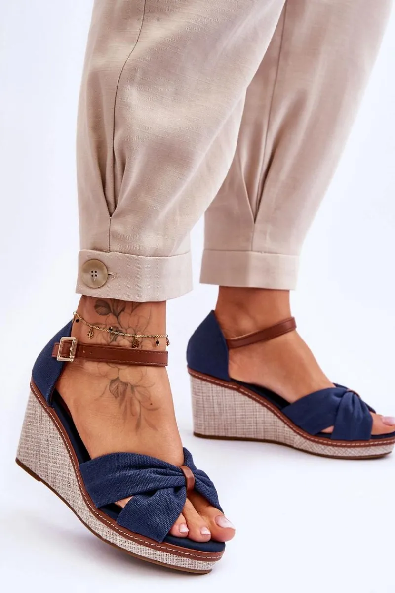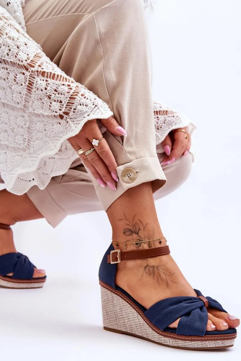 Wygodne sandały na modnym koturnie to klasyka wśród damskiego, letniego obuwia. Wkładka oraz wierzch wykonane zostały z tkaniny. Zapiętek został wzmocniony. Buty posiadają zapięcie na regulowany pasek ze sprzączką. Podeszwa w tych sandałkach jest wykonana z tworzywa i jest antypoślizgowa. Te sandały to idealny wybór do letnich stylizacji. Przy wyborze rozmiaru prosimy sugerować się tabelą rozmiarów.