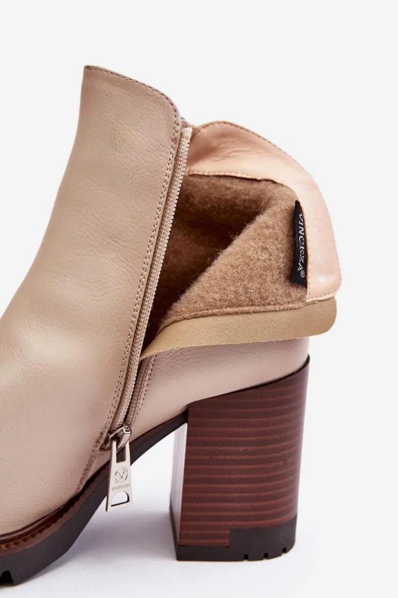 Botki na masywnym obcasie w postaci słupka i platformie zostały wykonane z eko skóry. Zapinane z boku na suwak. Dodatkowo posiadają usztywniany zapiętek. Środek został ocieplony kocem obuwniczym. Na zewnętrznej stronie znajduje się ozdobny zamek. Koniecznie powinnaś mieć ten model w swojej garderobie! Przy wyborze rozmiaru prosimy sugerować się tabelą rozmiarów.