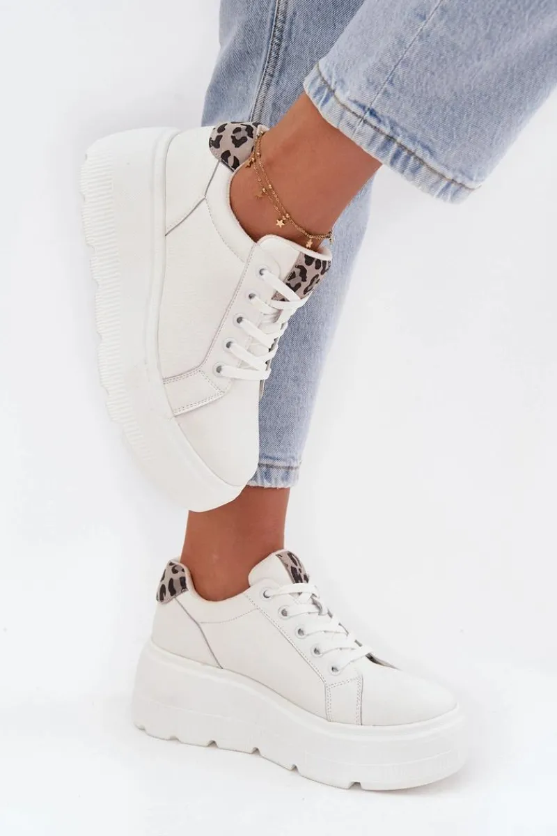 Damskie sneakersy Vinceza wykonane z naturalnej skóry łączą wygodę ze sportowym stylem. Osadzone na platformie, subtelnie podkreślają sylwetkę, a sznurowania pozwalają na idealne dopasowanie do stopy. Zaokrąglone noski dodają im klasycznego, uniwersalnego charakteru. Model ten doskonale sprawdzi się w codziennych, casualowych stylizacjach. Przy wyborze rozmiaru prosimy kierować się tabelą rozmiarów.