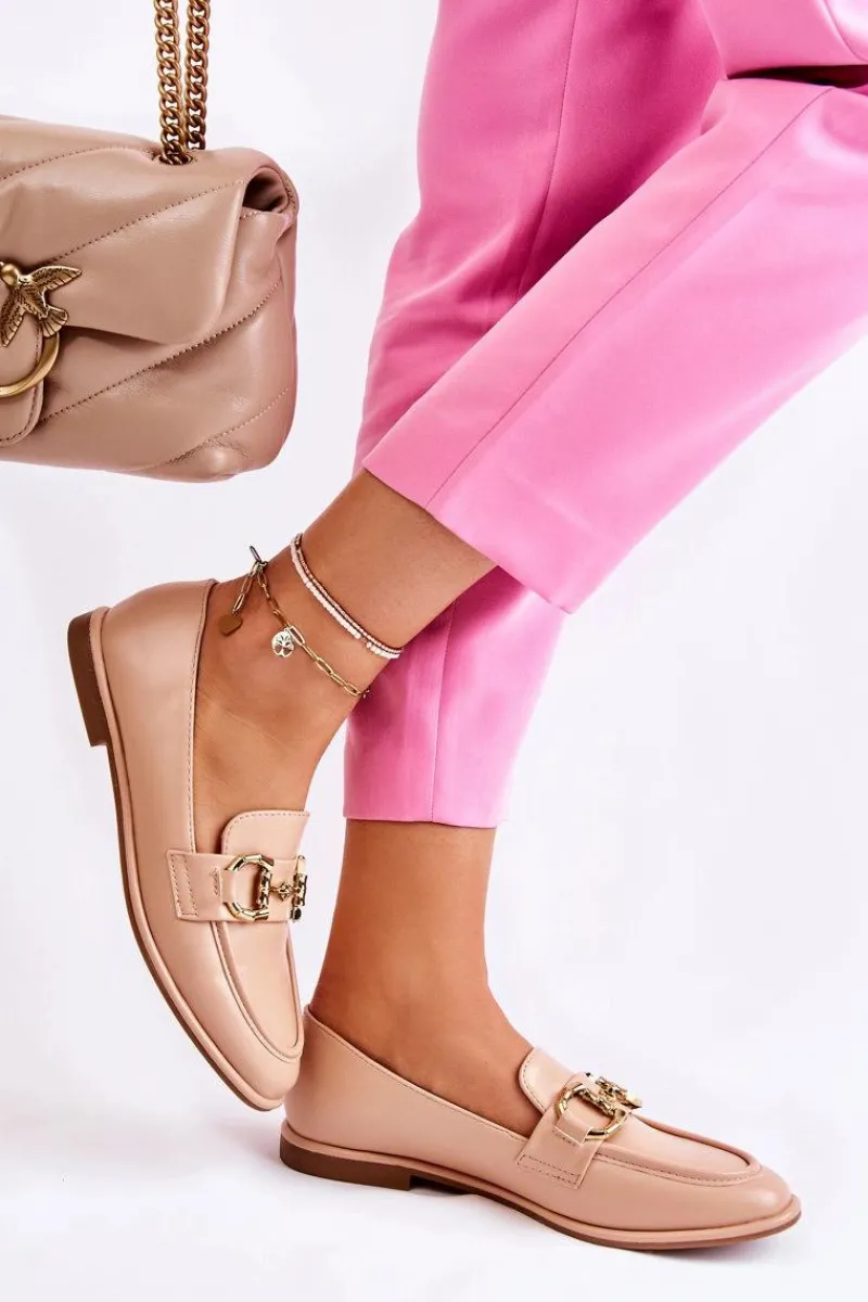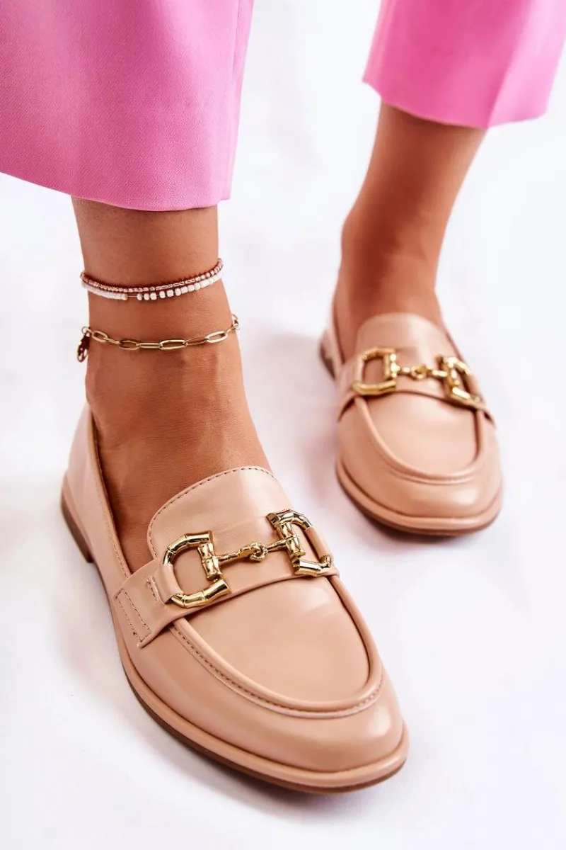 Modne mokasyny damskie świetnie sprawdzą się w sezonie wiosenno-letnim! Model ten wykorzystasz w wielu sytuacjach – do pracy, na spotkanie z przyjaciółmi czy na spacer. Miękka wkładka z eko skóry zadba o Twój komfort podczas użytkowania. Na przodzie znajduje się ozdobny element wykonany z tworzywa sztucznego. Nosek zaokrąglony. Buty osadzone na płaskim obcasie. Przy wyborze rozmiaru prosimy sugerować się tabelą rozmiarów.