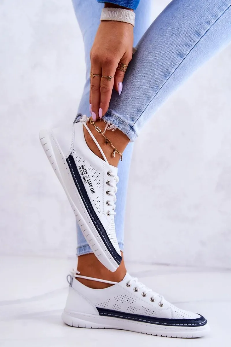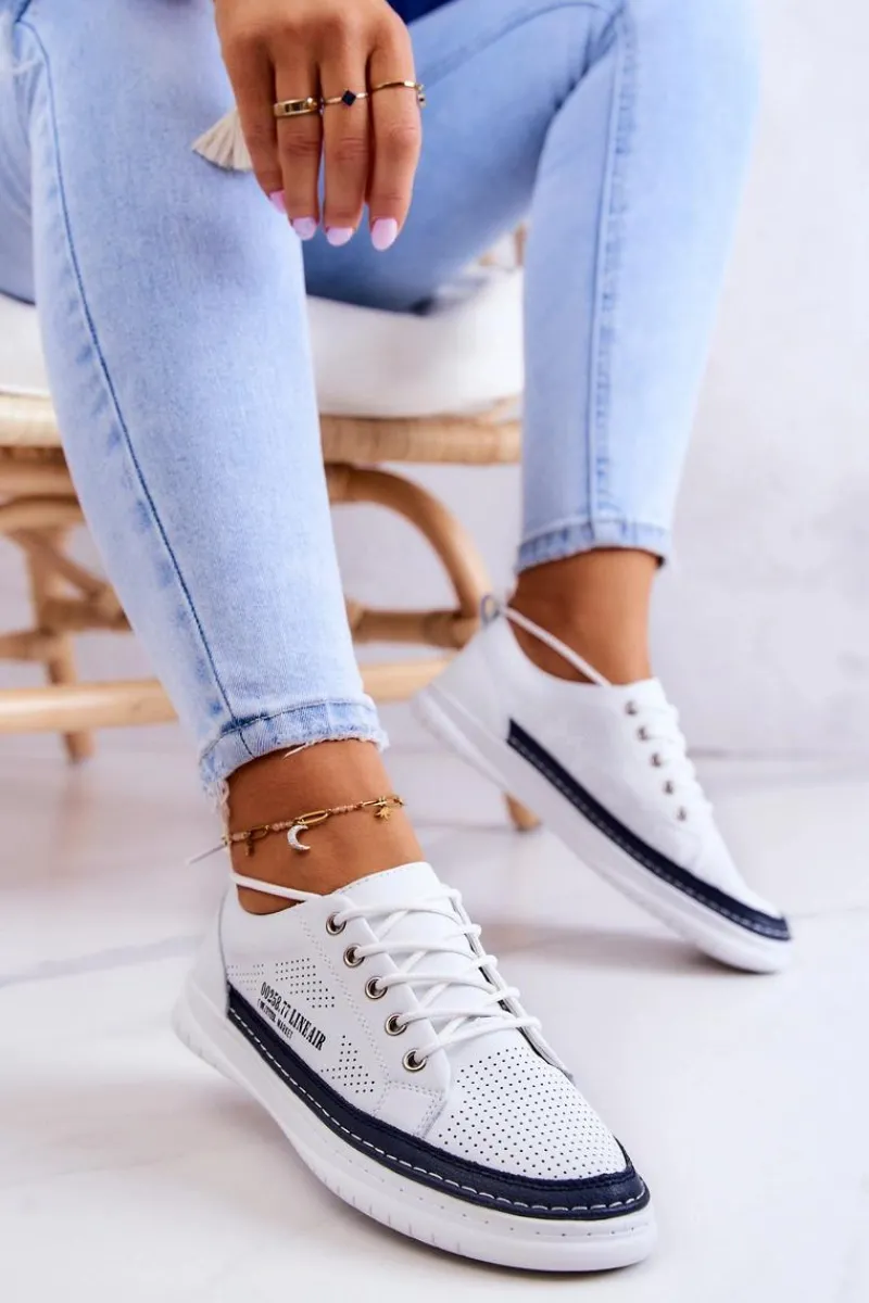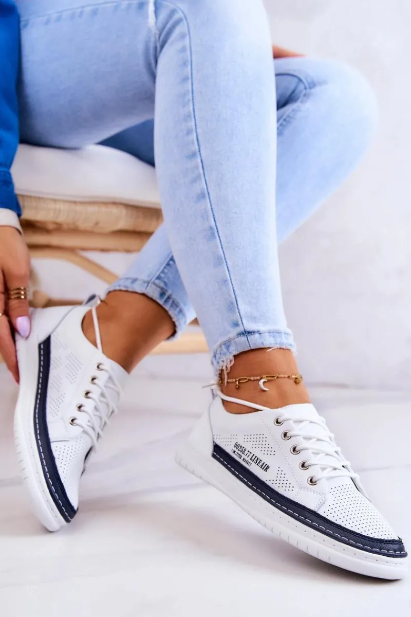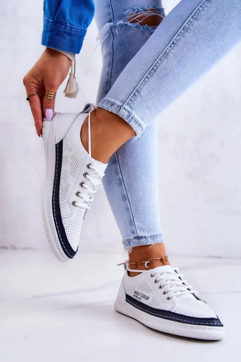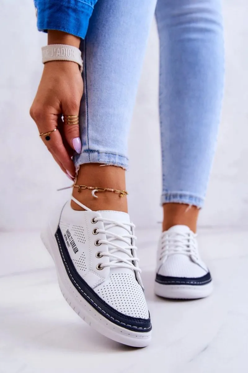 Online Damskie Skórzane Tenisówki Biało-Granatowe Cloesa Damskie Trampki Damskie Niskie