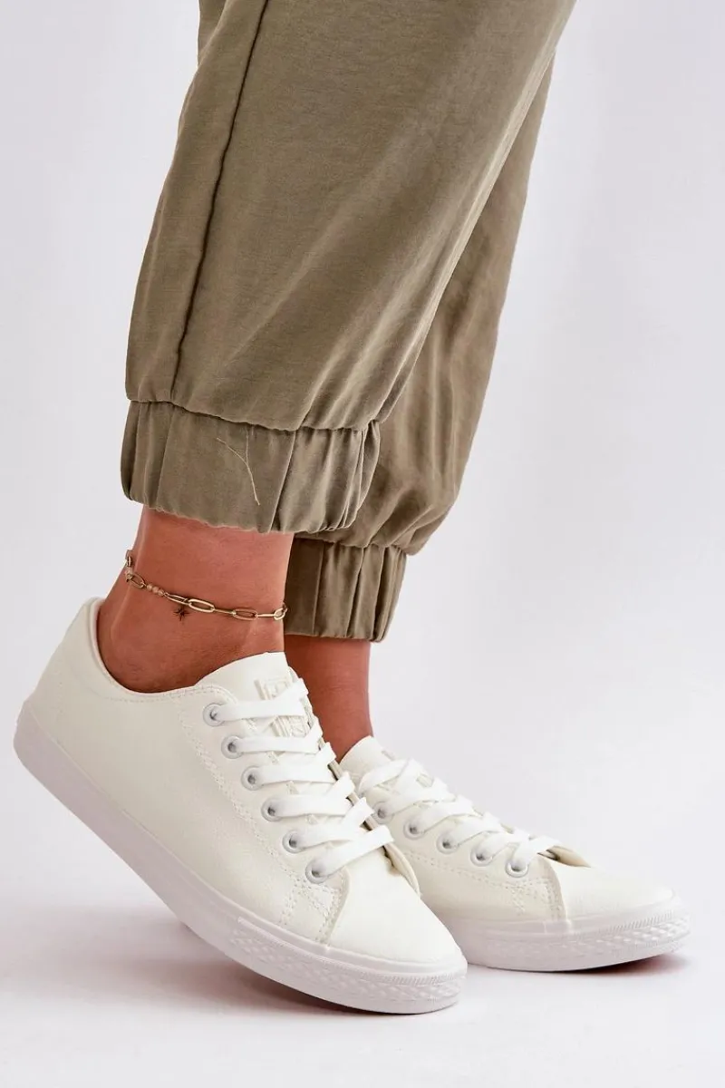 Klasyczne trampki damskie wykonane z eko skóry z cholewką do kostki. Buty posiadają gumową podeszwę, która jest dodatkowo antypoślizgowa. Ponadczasowy model, który powinnaś mieć w swojej szafie! Nosek zaokrąglony. Wygodna, materiałowa wkładka zapewni komfort podczas użytkowania. Model klasycznie wiązany na płaskie sznurowadła. Przy wyborze rozmiaru prosimy sugerować się tabelą rozmiarów.