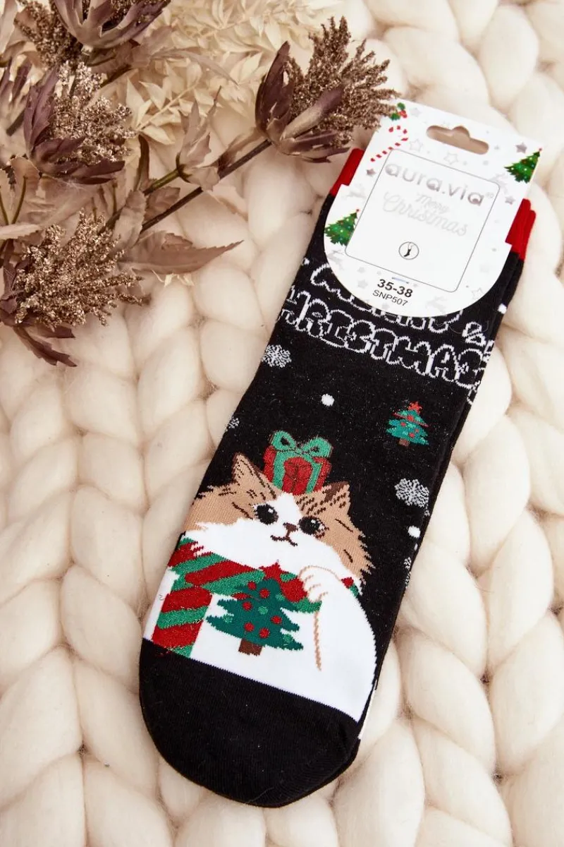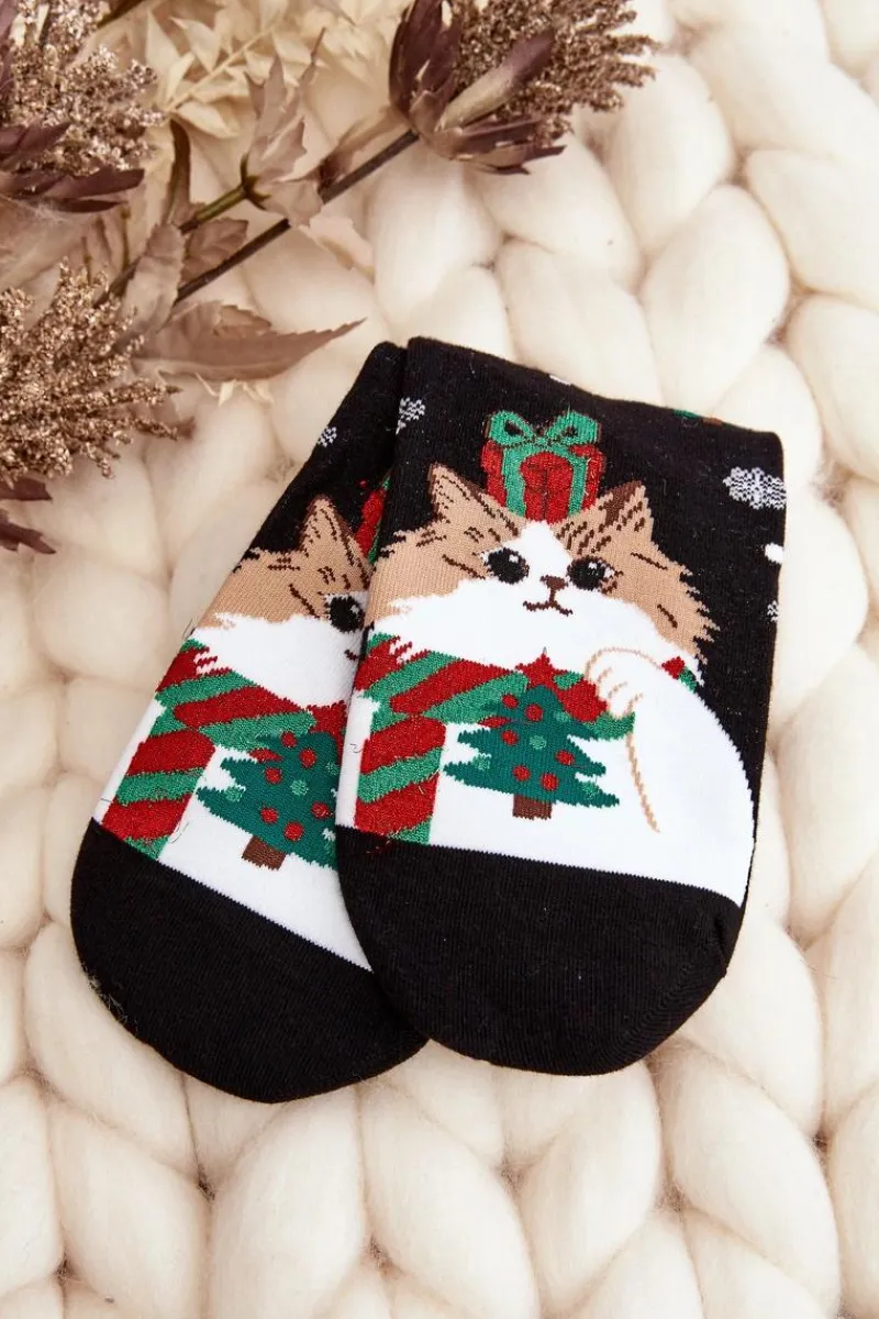 Skarpetki damskie ze świątecznymi wzorami. Wykonane głównie z wysokiej jakości bawełny. Idealne na zimowe dni! Co więcej, jeżeli szukasz pomysłu na prezent dla bliskiej osoby — nie czekaj dłużej — te skarpetki będą idealne!