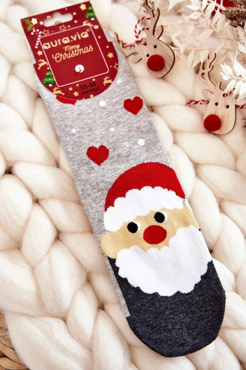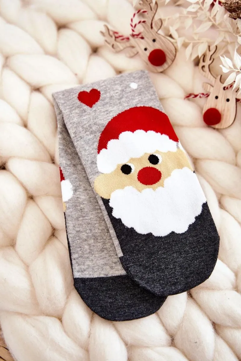 Bawełniane skarpetki damskie ze świątecznymi motywami. Świetnie sprawdzą się w sezonie zimowym. Idealne jako dodatek do prezentu dla bliskiej osoby. Skarpetki za kostkę sprawdzą się podczas chłodnych dni w sezonie zimowym. Posiadają delikatny ściągacz umożliwiający dopasowanie do tęgości nogi.