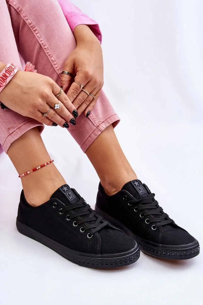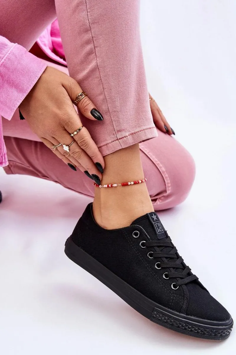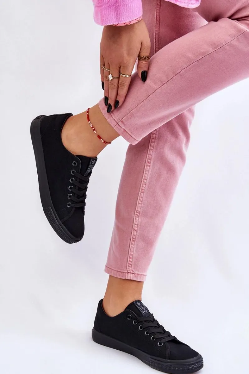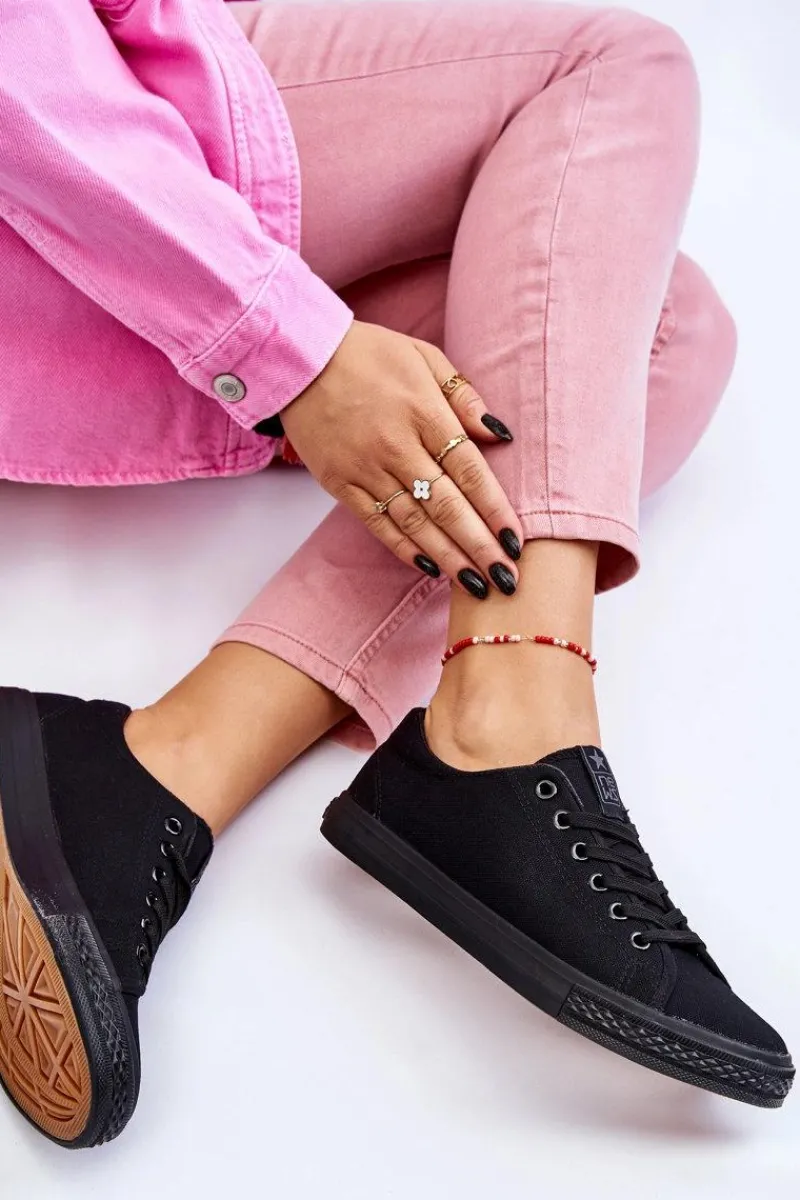 Klasyczne trampki damskie wykonane z materiału tekstylnego z cholewką do kostki. Buty posiadają gumową podeszwę, która jest dodatkowo antypoślizgowa. Ponadczasowy model, który powinnaś mieć w swojej szafie! Nosek zaokrąglony. Wygodna, materiałowa wkładka zapewni komfort podczas użytkowania. Model klasycznie wiązany na płaskie sznurowadła. Przy wyborze rozmiaru prosimy sugerować się tabelą rozmiarów.