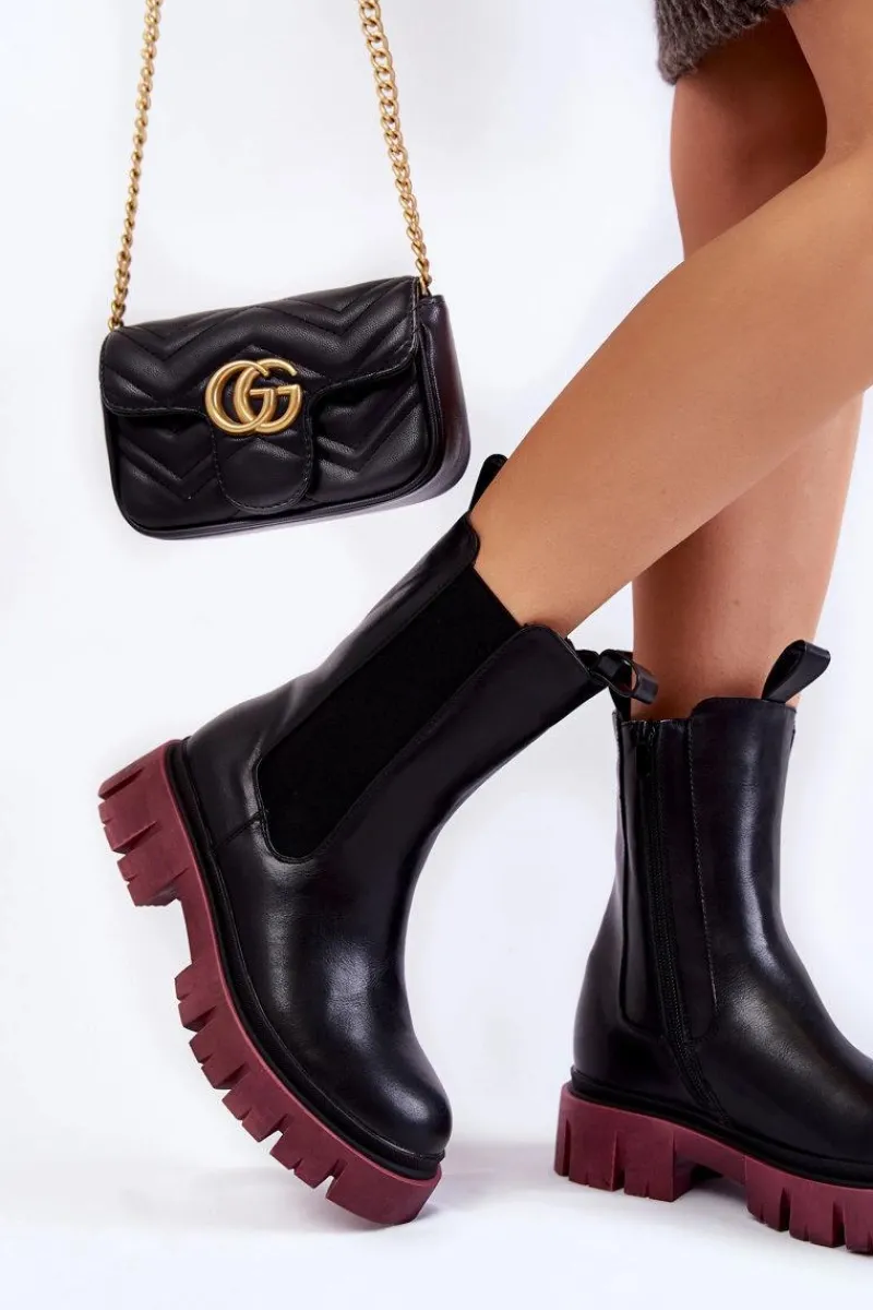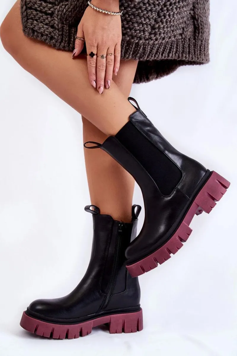 Damskie botki na masywnej platformie z płaskim obcasem w stylu workerów. Posiadają wysoką, sięgającą ponad kostkę cholewkę. Wykonane ze skóry ekologicznej. Elastyczna wstawka sprawi, że buty świetnie dopasują się do tęgości nogi. Botki te zostały ocieplone krótkim, miłym w dotyku futerkiem. Dodatkowo zapiętek jest usztywniany. Botki doskonale sprawdzą się w jesiennych stylizacjach. Przy wyborze rozmiaru prosimy kierować się tabelą rozmiarów