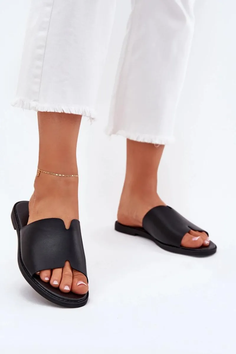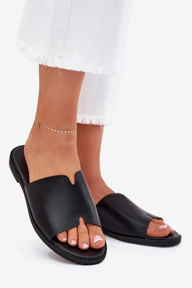 Klapki damskie z eko skóry na płaskim obcasie to klasyczna i elegancka opcja na ciepłe dni. Dzięki prostemu fasonowi łączą wygodę z uniwersalnym stylem, pasując do wielu letnich stylizacji. Idealne do codziennych wyjść, zapewniają komfort i subtelną elegancję przez cały dzień. Przy wyborze rozmiaru prosimy sugerować się tabelą rozmiarów.