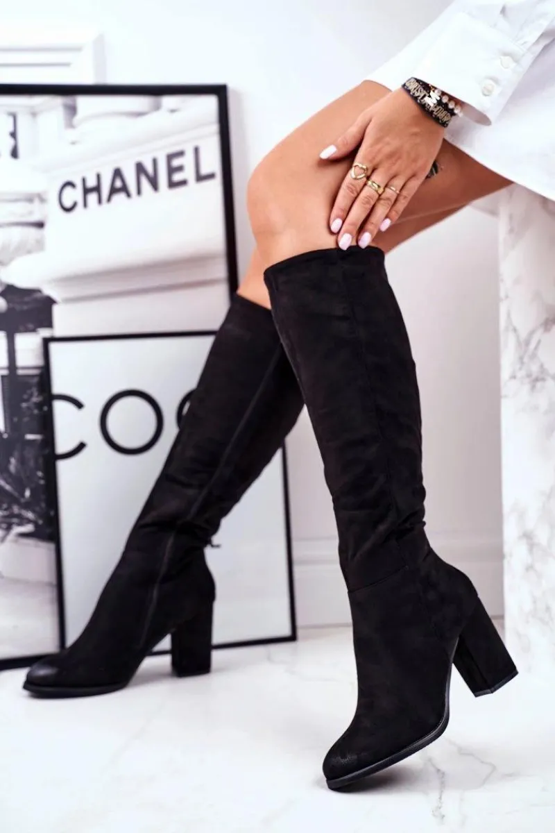 Online Kozaki Damskie Na Słupku Zamszowe Czarne Many Times Damskie Kozaki Na Obcasie|Kozaki Zamszowe