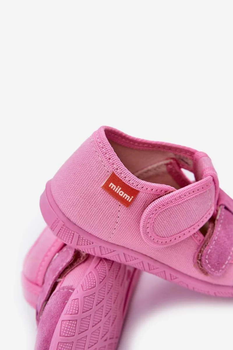 Kapcie dziecięce marki Milami to połączenie wygody i wysokiej jakości materiałów. Wykonane z trwałej tkaniny oraz naturalnego zamszu, zapewniają odpowiednią oddychalność i komfort. Model posiada szerokie noski, co daje przestrzeń dla małych paluszków, a podwójne zapięcie na rzep ułatwia zakładanie oraz precyzyjne dopasowanie do stopy. Anatomiczną, skórzana wkładka o profilowanej konstrukcji, która wspiera prawidłowy rozwój stopy i zapewnia wyjątkowy komfort noszenia. Idealne na co dzień – praktyczne, wygodne i stworzone z myślą o zdrowiu najmłodszych! Przy wyborze rozmiaru prosimy kierować tabelą rozmiarów.