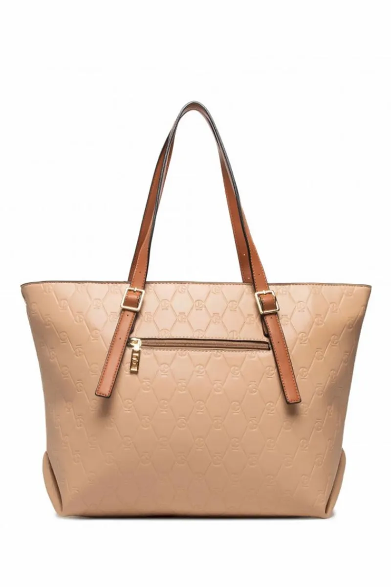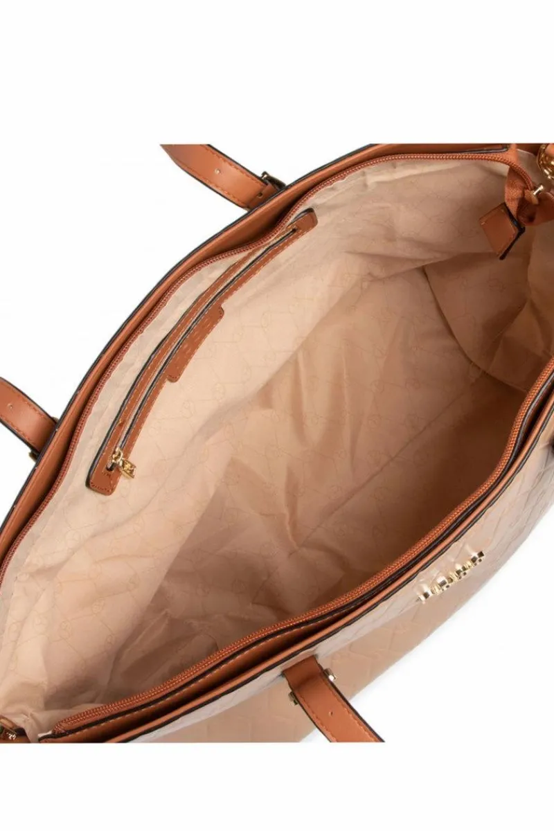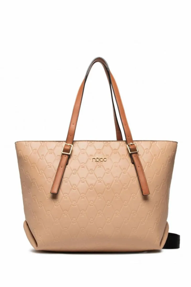Duża, pojemna shopperka Nobo. Posiada logowany print, który sprawia, że jest bardzo elegancka. Ten model torebki jest niezwykle wygodny i lekki poprzez swoją miękką konstrukcję. Z tyłu znajduje się kieszonka zamykana na zamek błyskawiczny. Shopperka posiada komorę zamykaną na suwak. W środku są dodatkowe dwie otwarte kieszonki na drobiazgi oraz jedna zamykana na suwak. Torebka ma regulowane uchwyty oraz regulowany, odpinany, parciany pasek z logo.