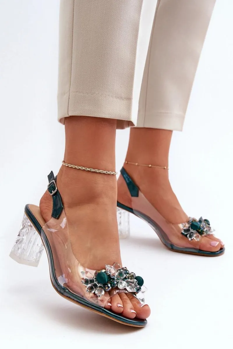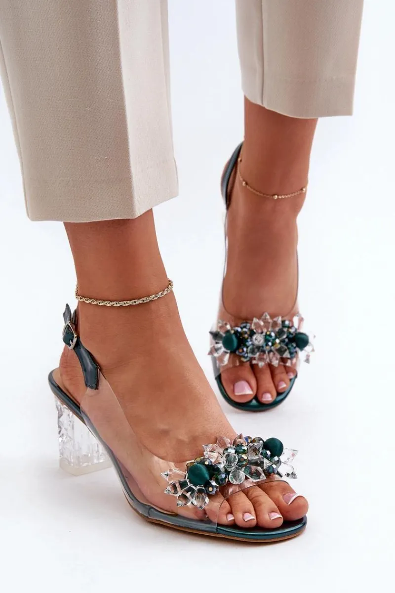 Eleganckie sandały na słupku to połączenie klasyki i nowoczesnego stylu. Ozdobione detalami, dodają wyjątkowego uroku każdej stylizacji. Skórzana wkładka gwarantują nie tylko wygodę, ale także trwałość. Zapinane na regulowany pasek ze sprzączką. Modne wykończenie sprawia, że są idealnym wyborem na wiele różnych okazji, dodając elegancji i stylu każdemu outfitowi. Przy wyborze rozmiaru prosimy sugerować się poniższą tabelą rozmiarów.
