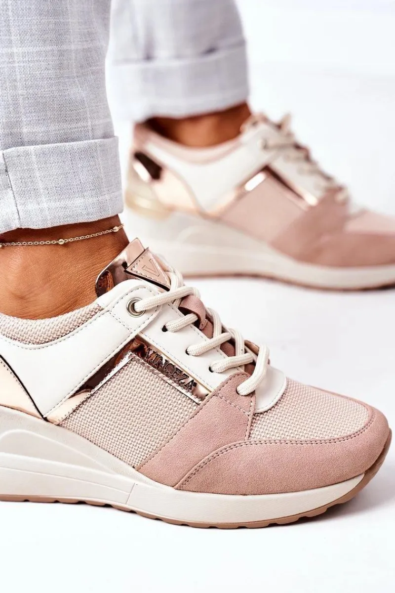 Eleganckie sneakersy na koturnie marki VINCEZA wykonane z połączenia przewiewnej tkaniny oraz eko skóry. Koniecznie sprawdź całą naszą kolekcję butów marki VINCEZA! Przy wyborze rozmiaru prosimy kierować się tabelą rozmiarów.