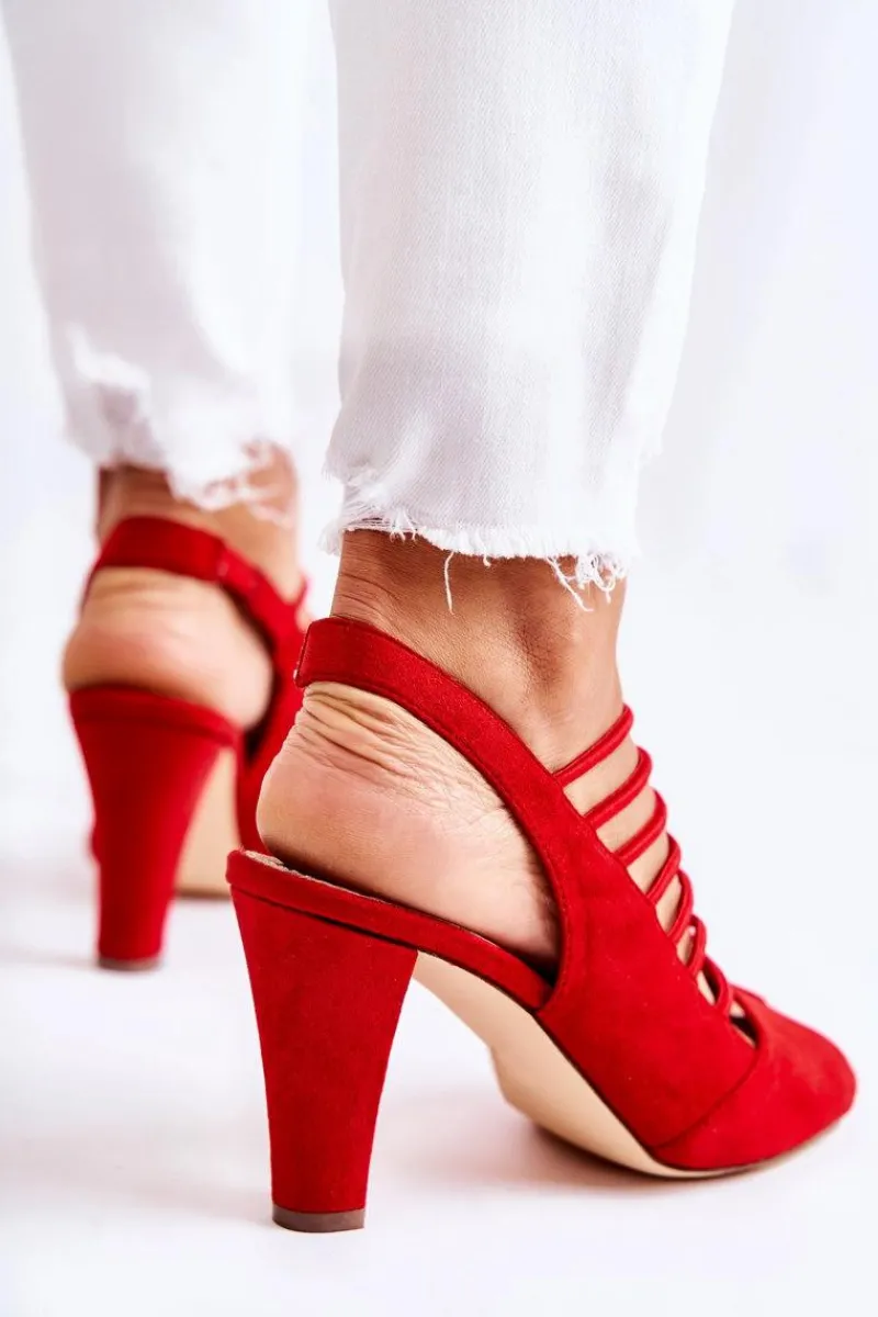 Modne sandały na obcasie w postaci cienkiego słupka. Wsuwane z dodatkową gumką wszytą na pasku. Dodatkowo z przodu także znajdują się gumki. Wykonane z eko zamszu. Nosek odkryty, zaokrąglony. Wkładka wykonana z naturalnej skóry. Jest bardzo wygodna w użytkowaniu nawet przez cały dzień. Koniecznie powinnaś mieć ten model w swojej szafie! Jest idealny na upalne dni! Przy wyborze rozmiaru prosimy kierować tabelą rozmiarów.