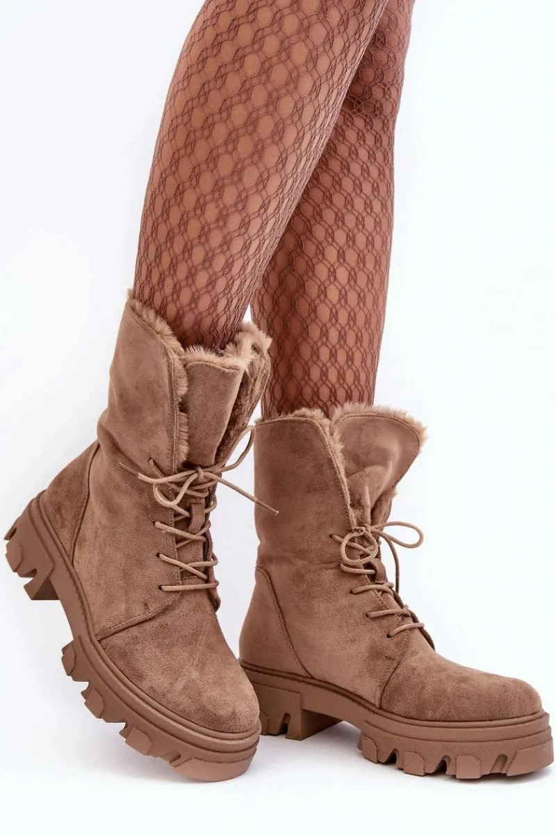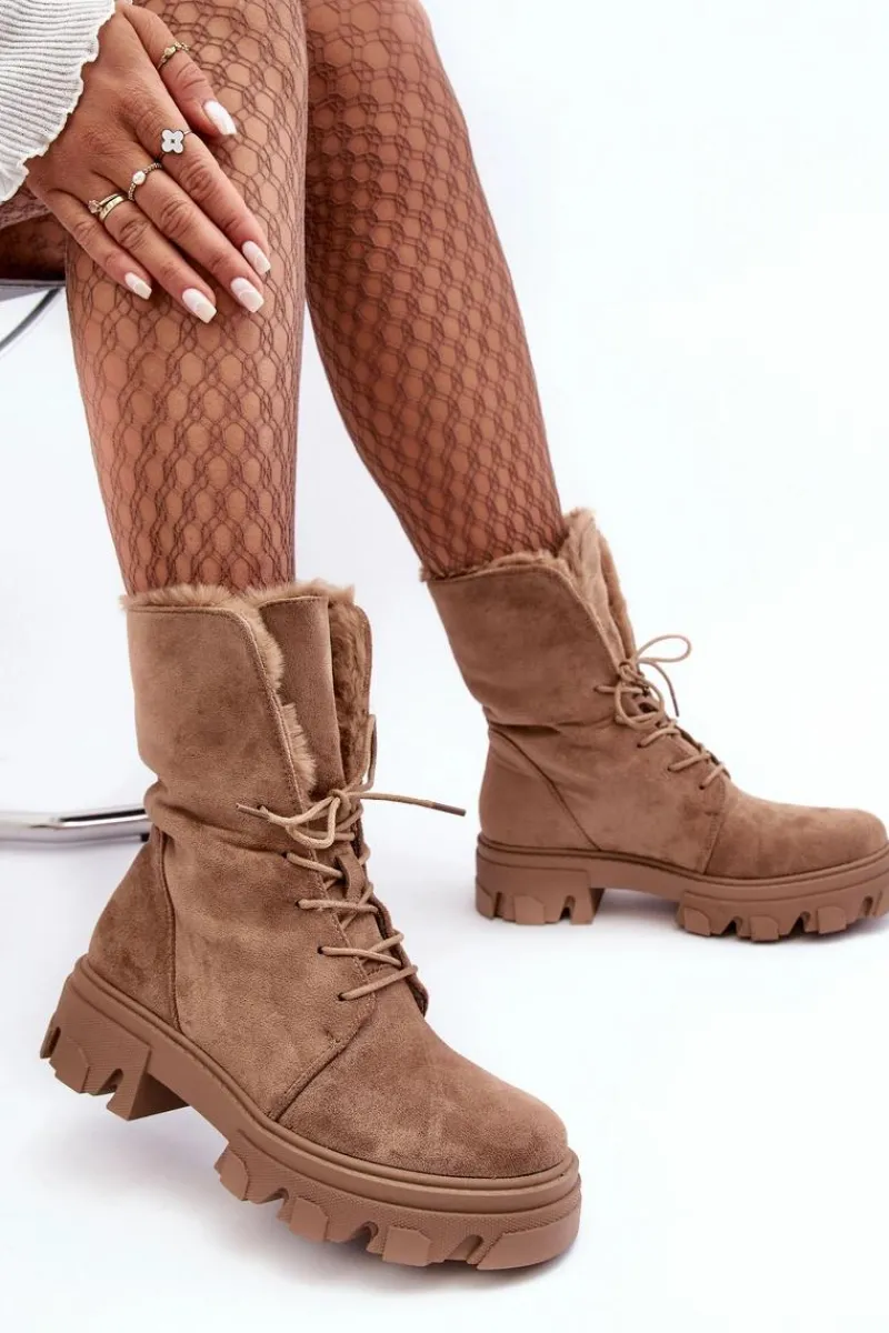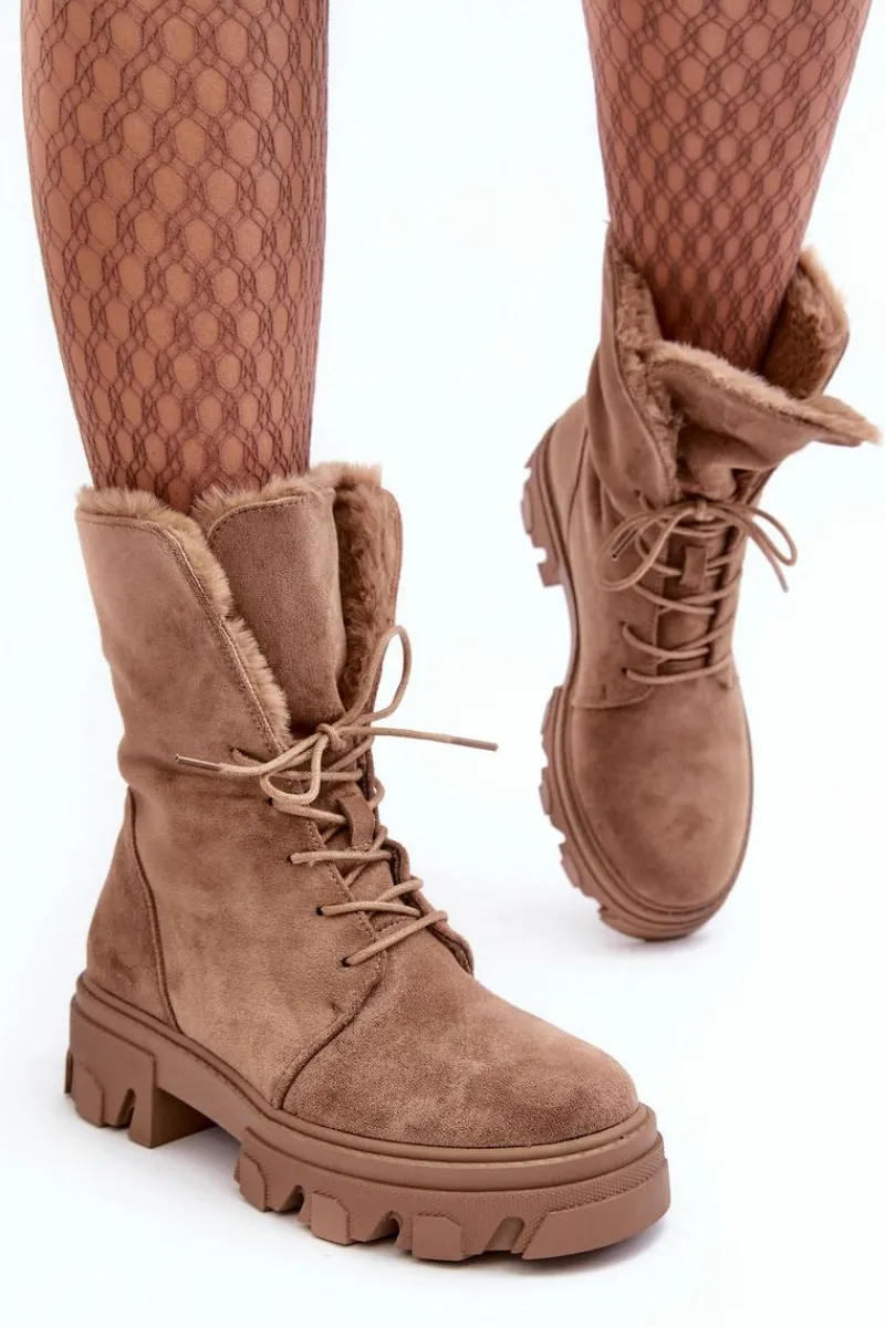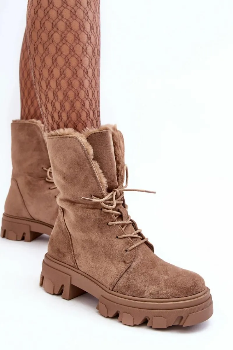 Online Zamszowe Sznurowane Botki Workery Z Futerkiem Ciemnobeżowe Frendo Damskie Botki Sznurowane|Czarne Botki