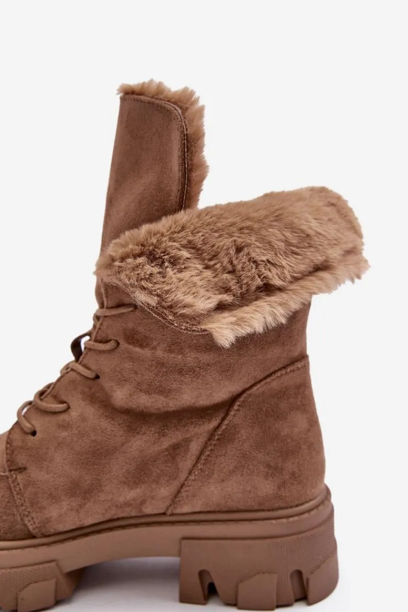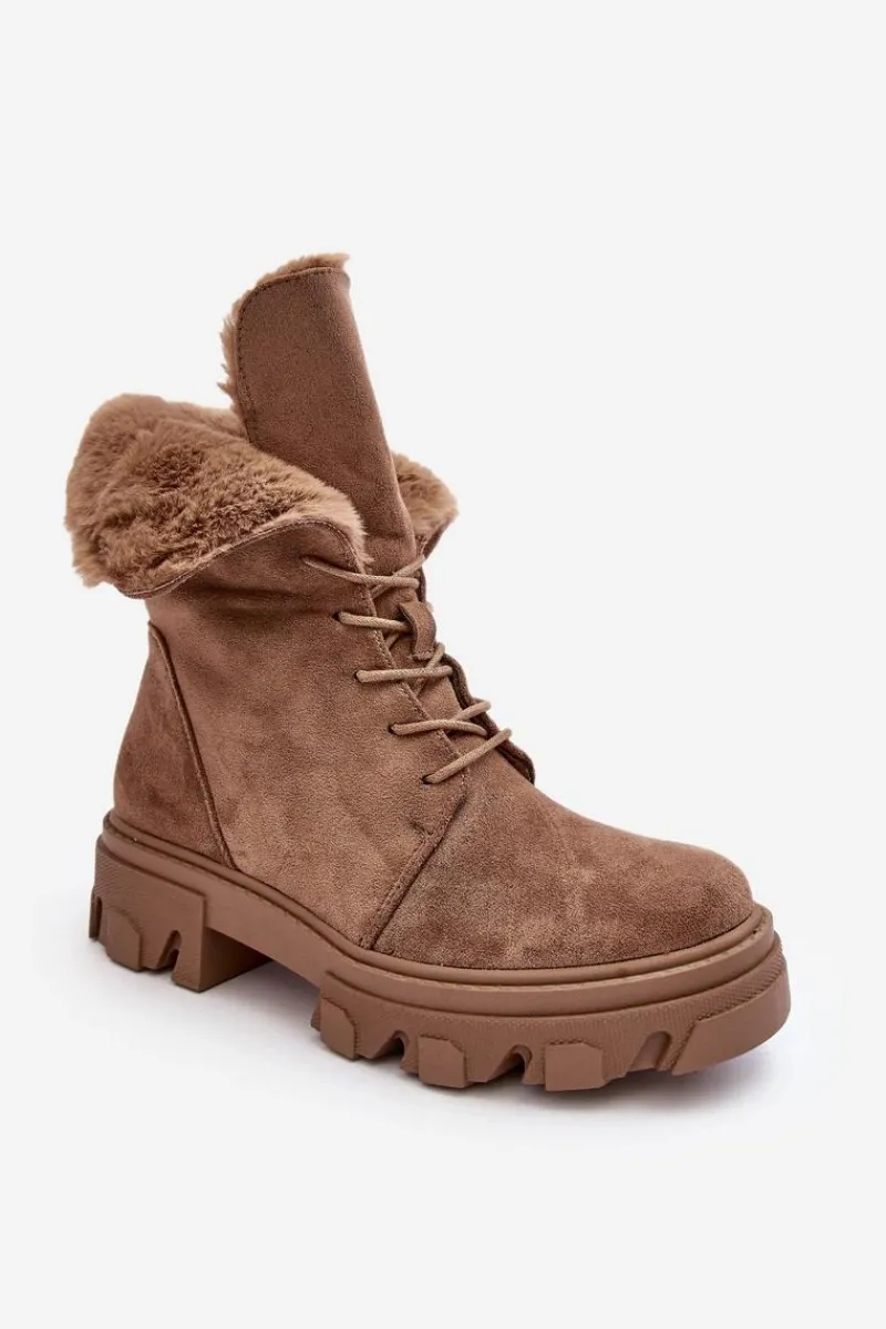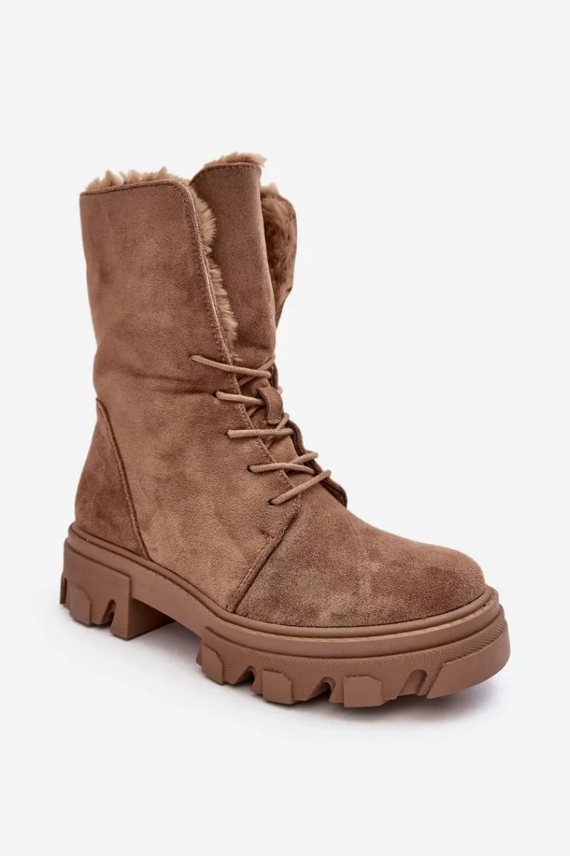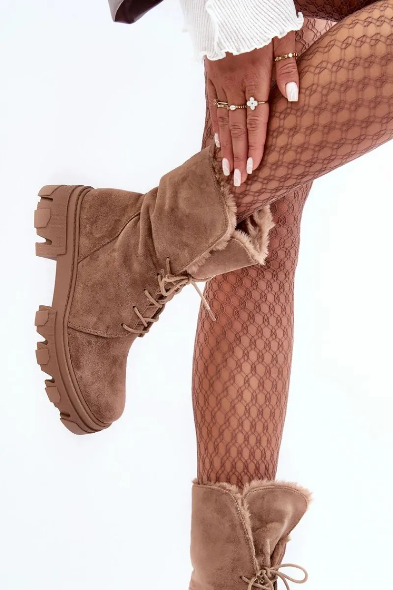 Online Zamszowe Sznurowane Botki Workery Z Futerkiem Ciemnobeżowe Frendo Damskie Botki Sznurowane|Czarne Botki