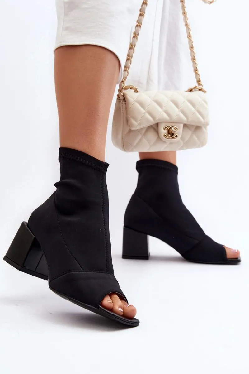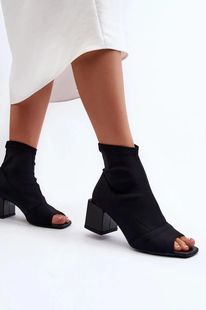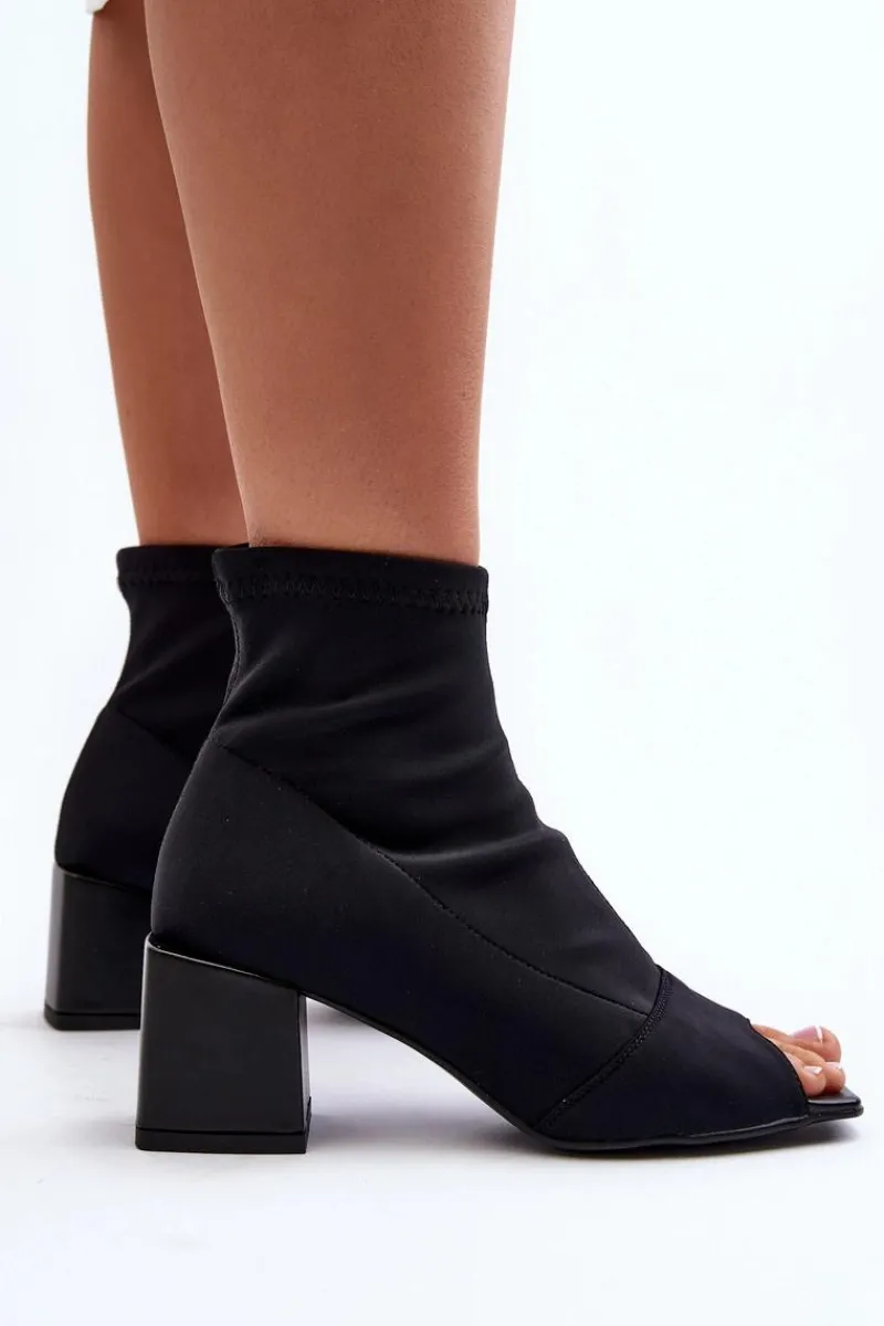 Botki damskie wykonane z materiału tekstylnego. Osadzone na obcasie w postaci klocka. Cholewka za kostkę wzbogacona przeszyciami. Model wsuwany. Wkładka ze skóry naturalnej zapewni komfort podczas użytkowania. Noski odkryte. Ten niezwykle stylowy model wykorzystasz do wielu wiosennych stylizacji! Przy wyborze rozmiaru prosimy kierować się tabelą rozmiarów