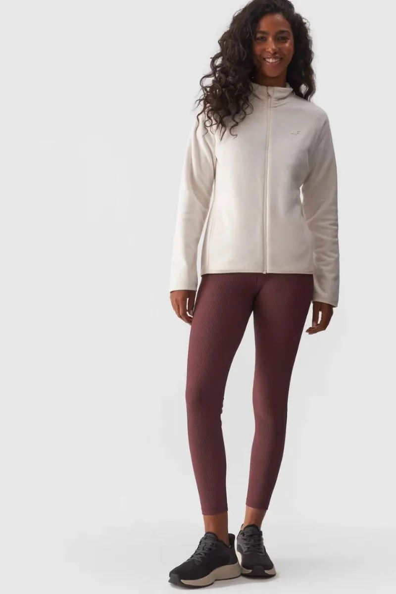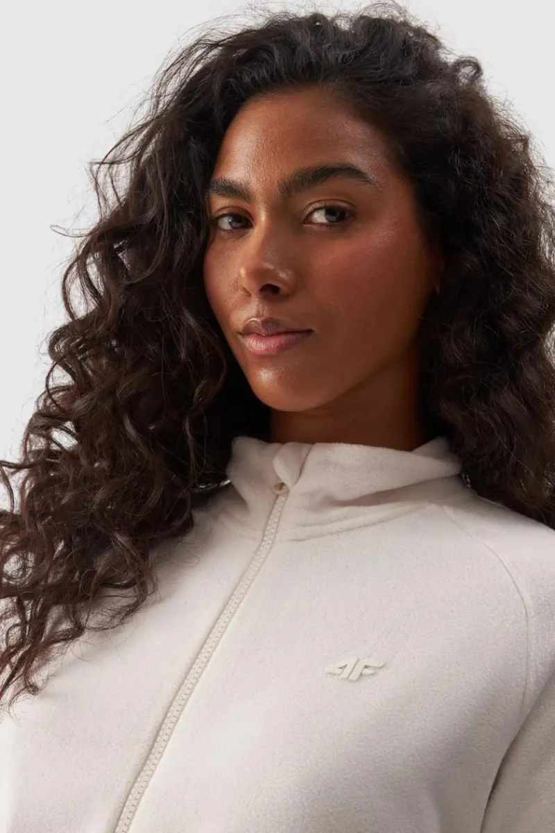Bluza z polaru dla kobiety jest wykonana z cienkiego mikropolaru, który cechuje się dobrą izolacją termiczną przy wyjątkowo lekkiej wadze. Materiał ten oddycha i szybko schnie. Technologia 4F Warm wspiera komfort cieplny. Posiada krój regular, który wygodnie dopasowuje się do sylwetki oraz standardową długość sięgającą do linii bioder. Bluza z polaru dla kobiety posiada stójkę, która osłania szyję. Klasycznie wykończone mankiety. Po bokach znajdują się 2 kieszenie otwarte. Zapinany na jednokierunkowy zamek główny. Raglanowe rękawy nie ograniczają ruchów. Materiał dodatkowy: Bawełna 60%, Poliester 40% Materiał główny: Poliester 100%