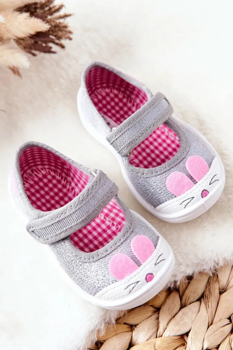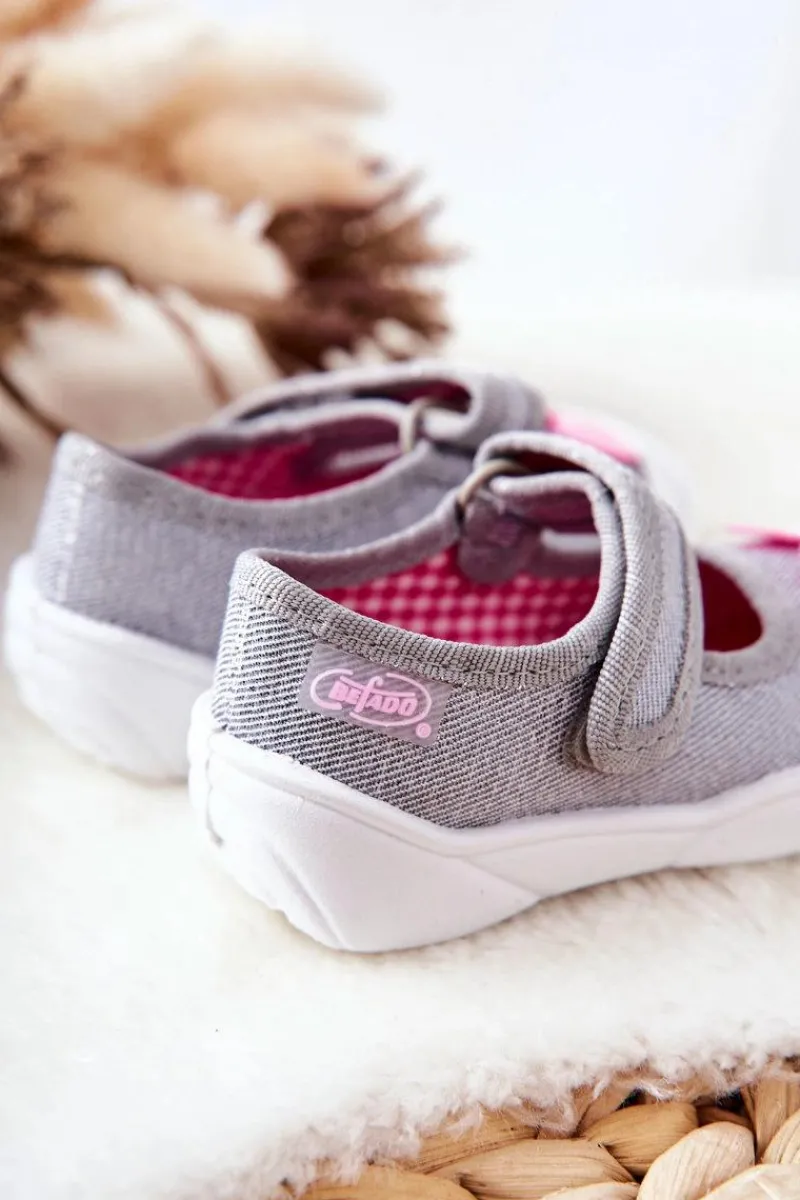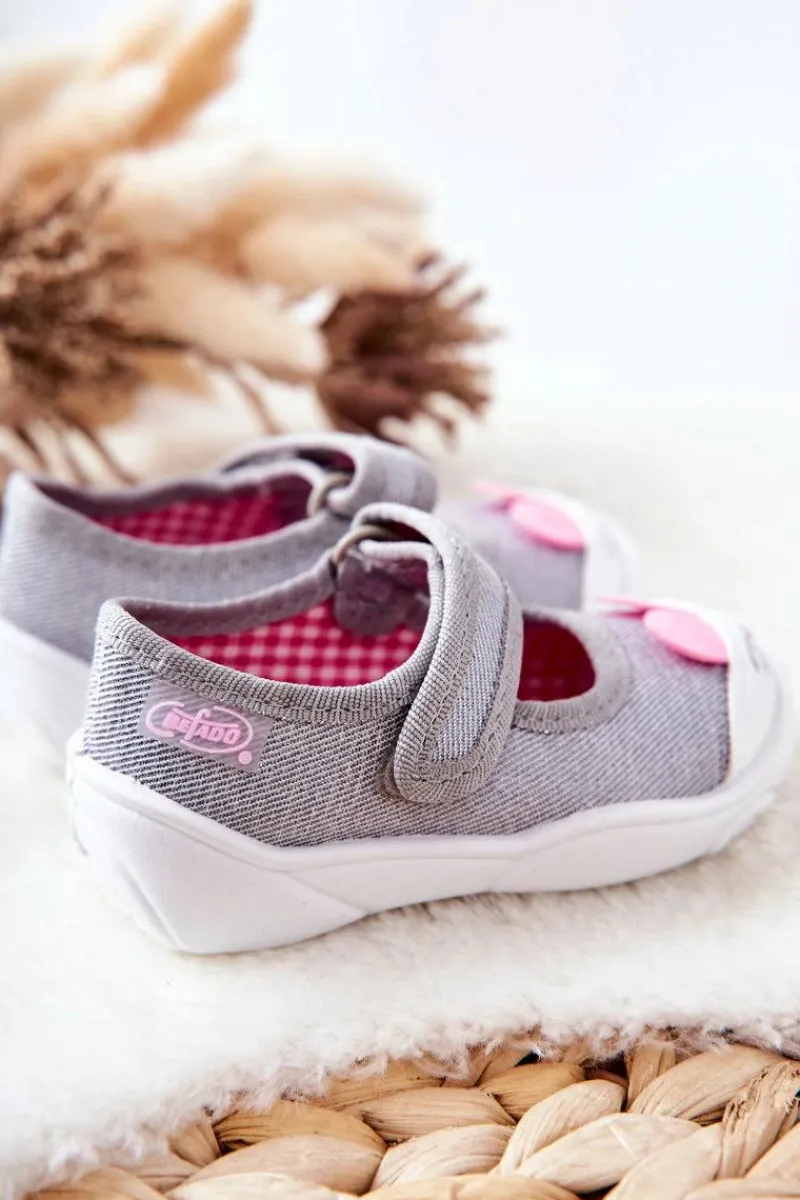 Dziewczęce papcie chronią stopy dziecka przed powstaniem płaskostopia, dając im swobodę i komfort podczas wielu godzin spędzonych w żłobku czy na zabawach na dworze. Obuwie posiada zapięcie na rzep, które podtrzymuje stopę. Buciki są lekkie i wykonane z bawełnianych tkanin, co znacznie przyczynia się do ograniczenia potliwości stópek. Podwyższony zapiętek pozwala na stabilizację stopy dziecka, co jest ważne przy każdej aktywności malucha. Model ten posiada szeroki czubek, co zapewnia przestrzeń dla małych paluszków, dzięki czemu dziecko czuje się komfortowo.Przy wyborze rozmiaru prosimy kierować tabelą rozmiarów.