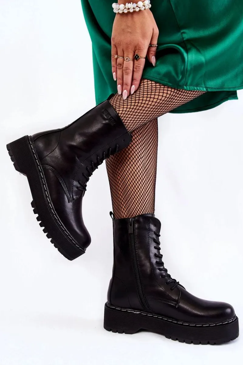 Botki Big Star wykonane są z wierzchu z eko skóry. Środek butów został ocieplony miłym w dotyku kocem obuwniczym. Masywna podeszwa sprawia, że botki są stabilne podczas użytkowania na nierównej nawierzchni. Model z suwakiem oraz sznurowaniem z przodu. Koniecznie musisz je mieć! Sprawdź całą kolekcję tej marki! Przy wyborze rozmiaru prosimy sugerować się tabelą rozmiarów.