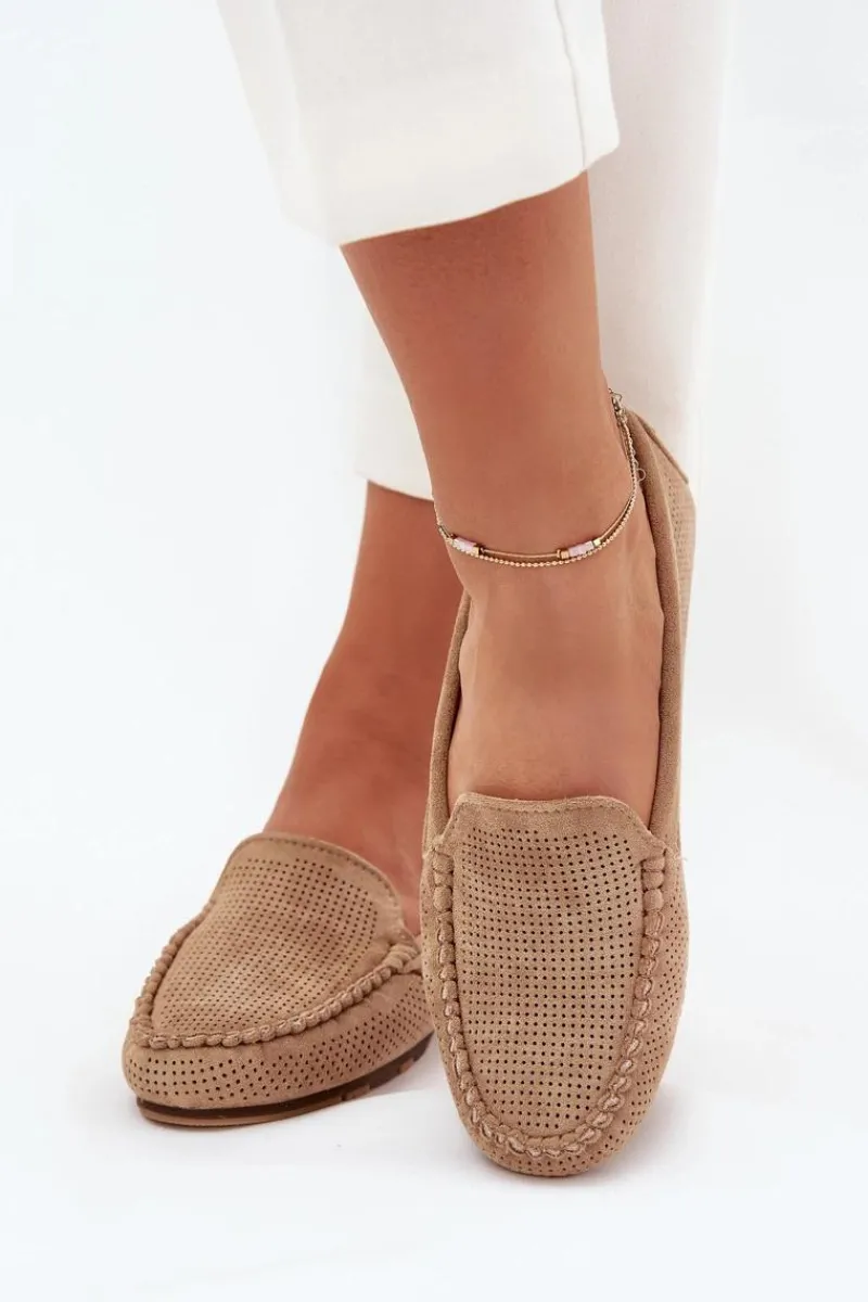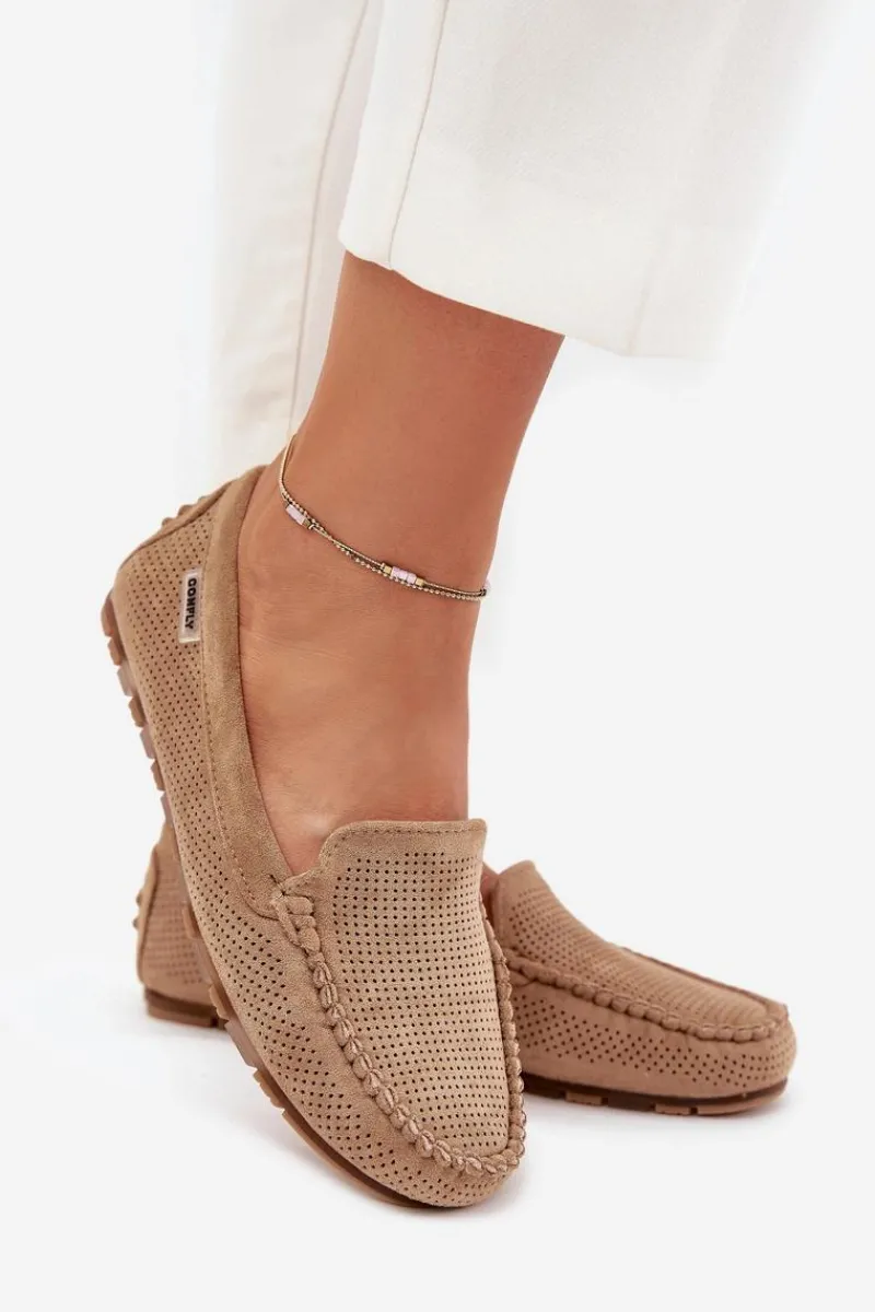 Klasyczne mokasyny damskie wykonane z przyjemnego w dotyku eko zamszu to połączenie wygody i stylu. Zaokrąglone noski nadają im delikatny wygląd, a miękka wkładka z pianki, którą można wyjąć, zapewnia dodatkowy komfort podczas noszenia. Idealne na codzienne wyjścia, te mokasyny będą doskonałym uzupełnieniem Twojej garderoby. Przy wyborze rozmiaru prosimy sugerować się tabelą rozmiarów.