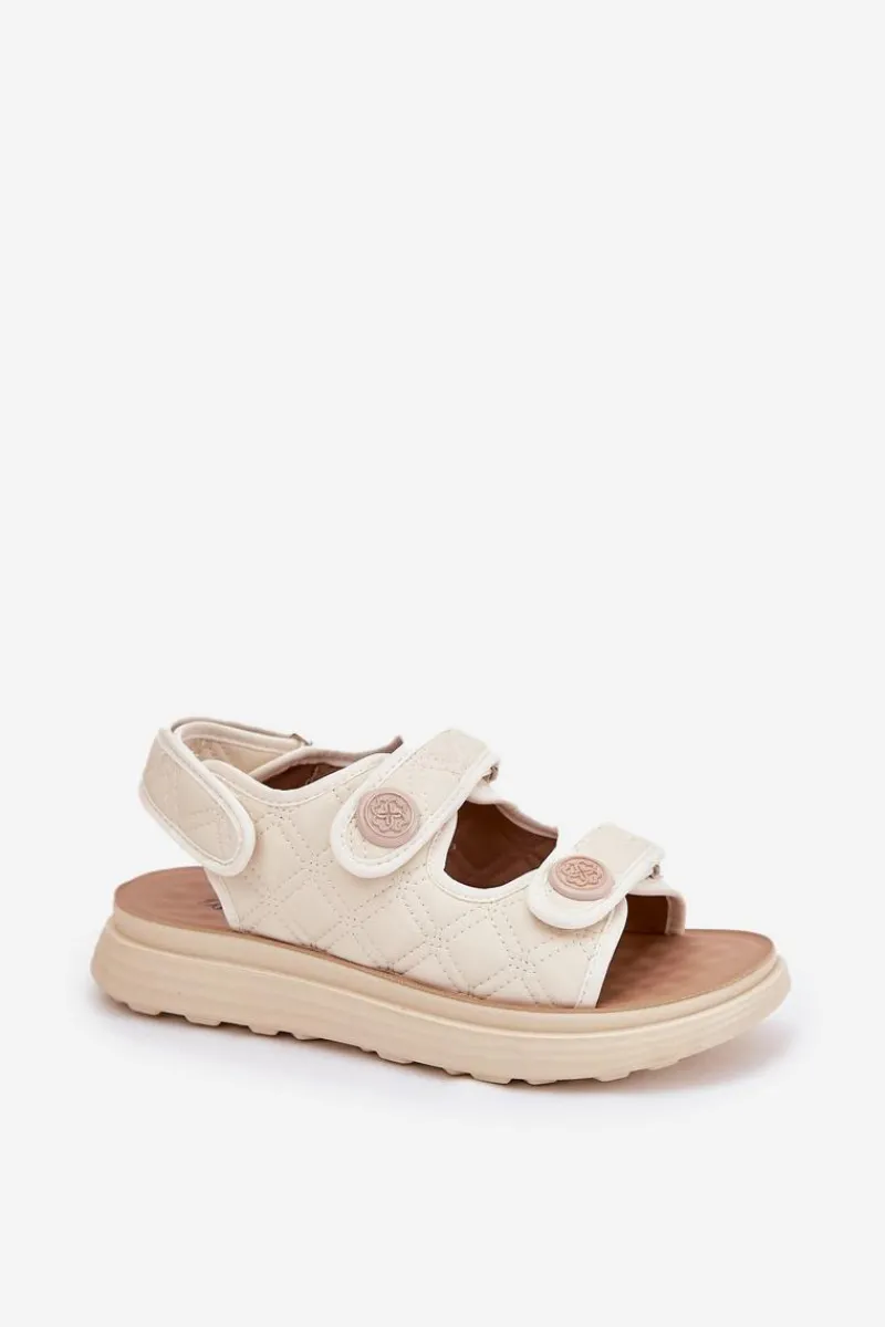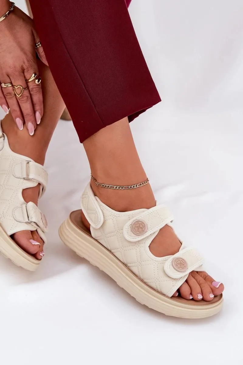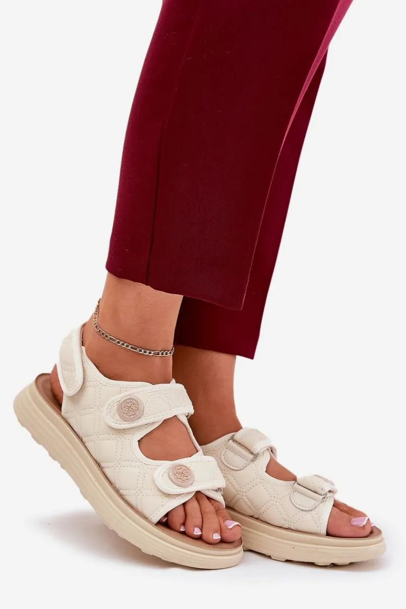 Stylowe sandały damskie z eko skóry. Osadzone na platformie, które zapewnia wygodę i modny wygląd. Zapięcie na trzy rzepy umożliwia idealne dopasowanie do stopy. Ozdobne detale nadają unikalnego charakteru. Doskonałe na lato, świetnie komponują się z letnimi sukienkami, spódnicami i spodniami, dodając każdej stylizacji lekkości i modnego wyglądu. Przy wyborze rozmiaru prosimy sugerować się tabelą rozmiarów.