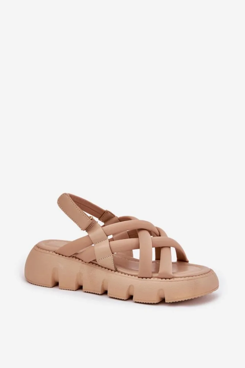 Damskie sandały na platformie to świetna opcja na ciepłe dni, łącząca styl z wygodą. Model ten zapinany na rzep zapewnia łatwość zakładania i idealne dopasowanie do stopy. Z przodu sandały wyróżniają się przeplatającymi się paskami, które dodają im nowoczesnego charakteru. Idealne do codziennych stylizacji! Przy wyborze rozmiaru prosimy sugerować się tabelą rozmiarów.