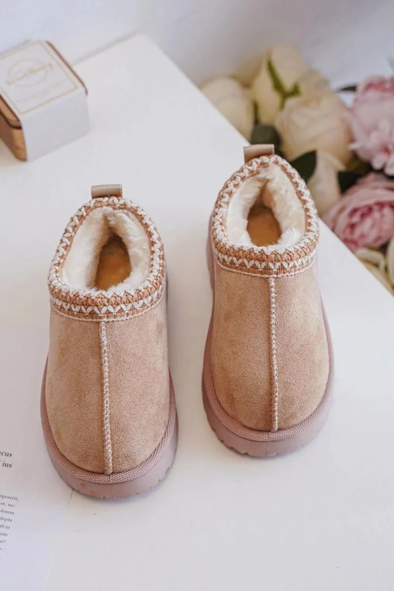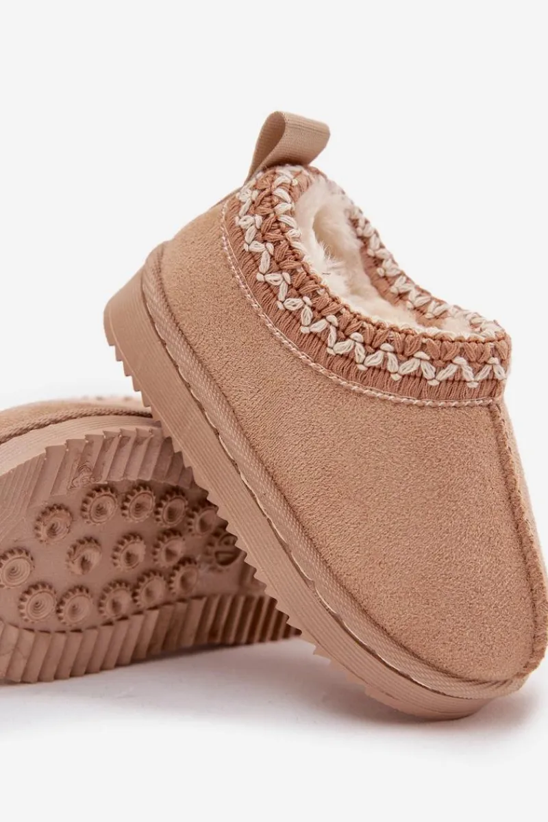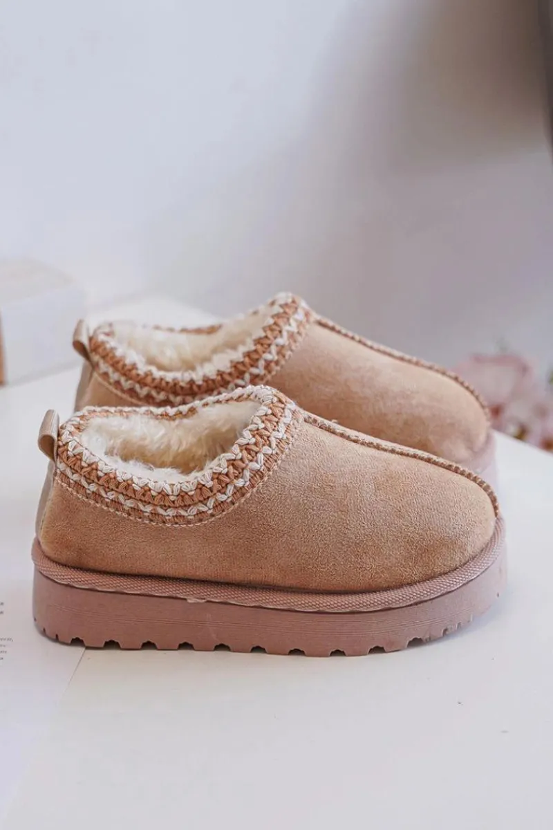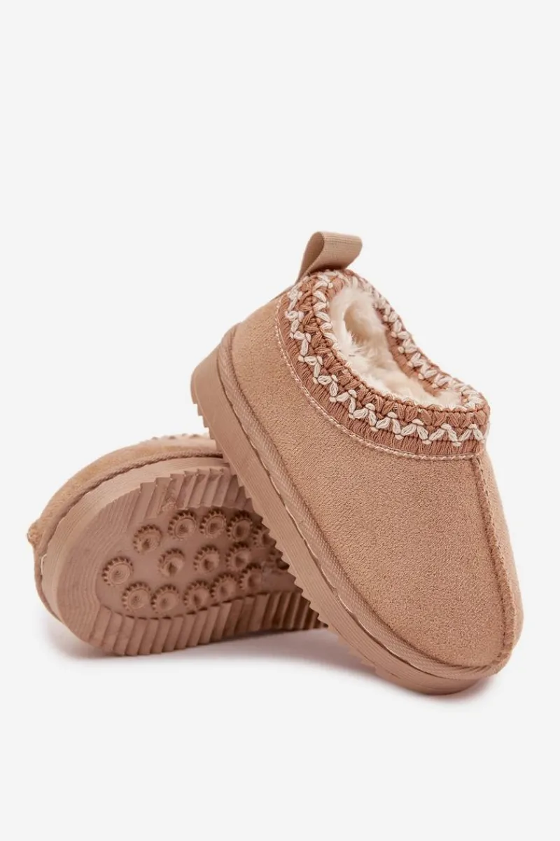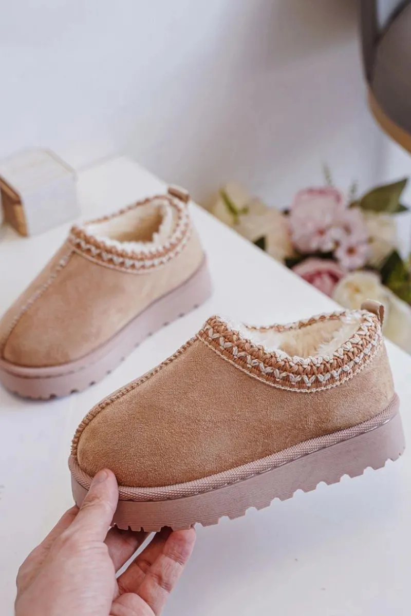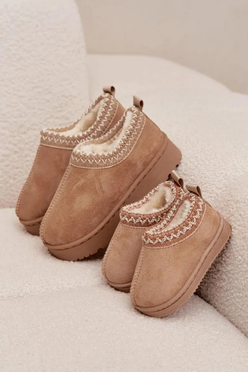 Śniegowce dziecięce z uroczym wzorem na górze cholewki. W środku ocieplone syntetycznym, grubym futerkiem, co zapewni ciepło w najmroźniejsze dni. Wykonane z eko zamszu. Osadzone na grubej podeszwie, która świetnie odizoluje od zimnego podłoża. Model ten dostępny jest również w rozmiarach damskich. Stwórz komplet mama + dziecko! Przy wyborze rozmiaru prosimy kierować tabelą rozmiarów.