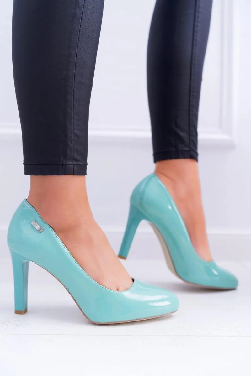 Outlet Buty Sergio Leone Czółenka damskie Lakierowane Miętowe Na Słupku Sergio Leone Campbell