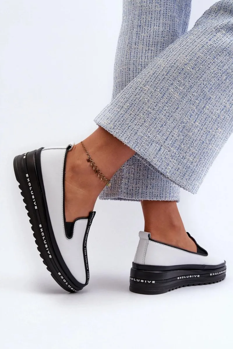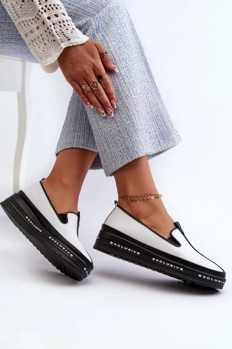Wsuwane półbuty damskie marki S.Barski wykonane ze skóry naturalnej to połączenie elegancji i wygody. Osadzone na platformie. Ozdobione napisami. Miękka wkładka comfort. Noski zaokrąglone. Ten niezwykle stylowy model z pewnością dopełni wiele stylizacji! Przy wyborze rozmiaru prosimy sugerować się tabelą rozmiarów.