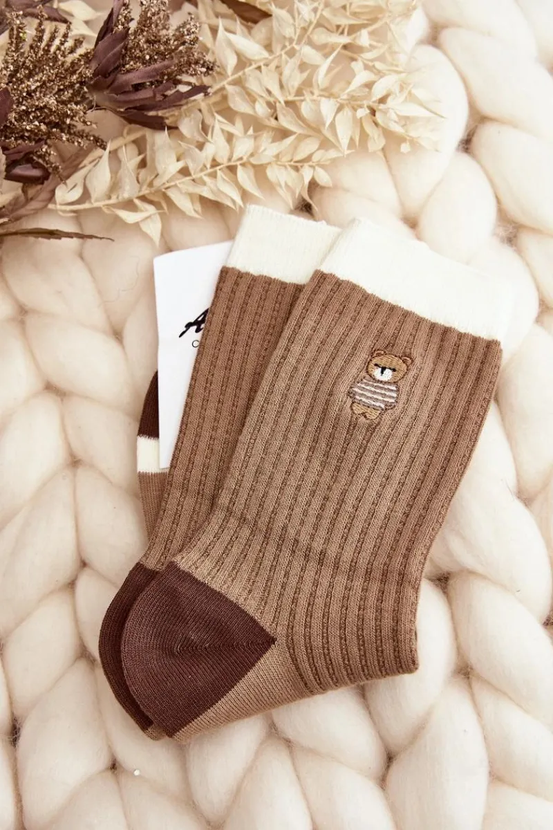 Outlet Damskie Skarpety Z Misiem – Jasny Brąz Skarpetki|Skarpetki