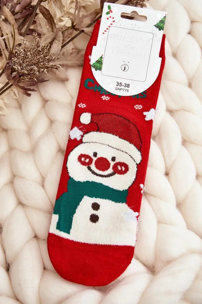 Outlet Damskie Świąteczne Skarpety Z Bałwanem Czerwone Skarpetki|Skarpetki