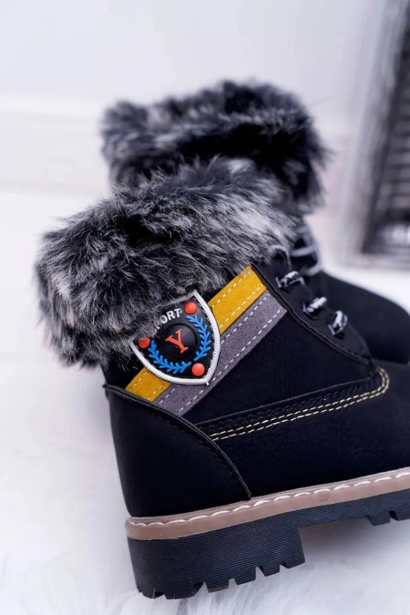 Outlet Dziecięce Chłopięce Botki Ocieplane Futerkiem Trapery Czarne Cobi Dzieci Chłopięce