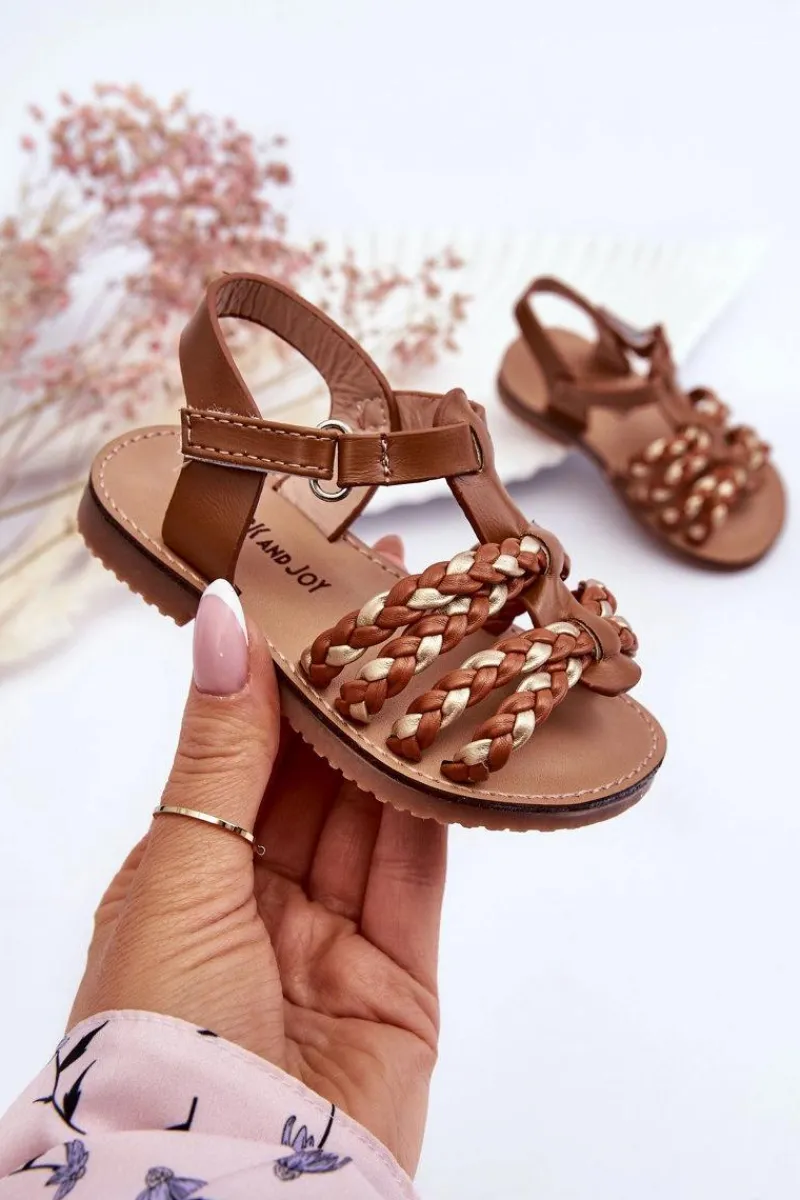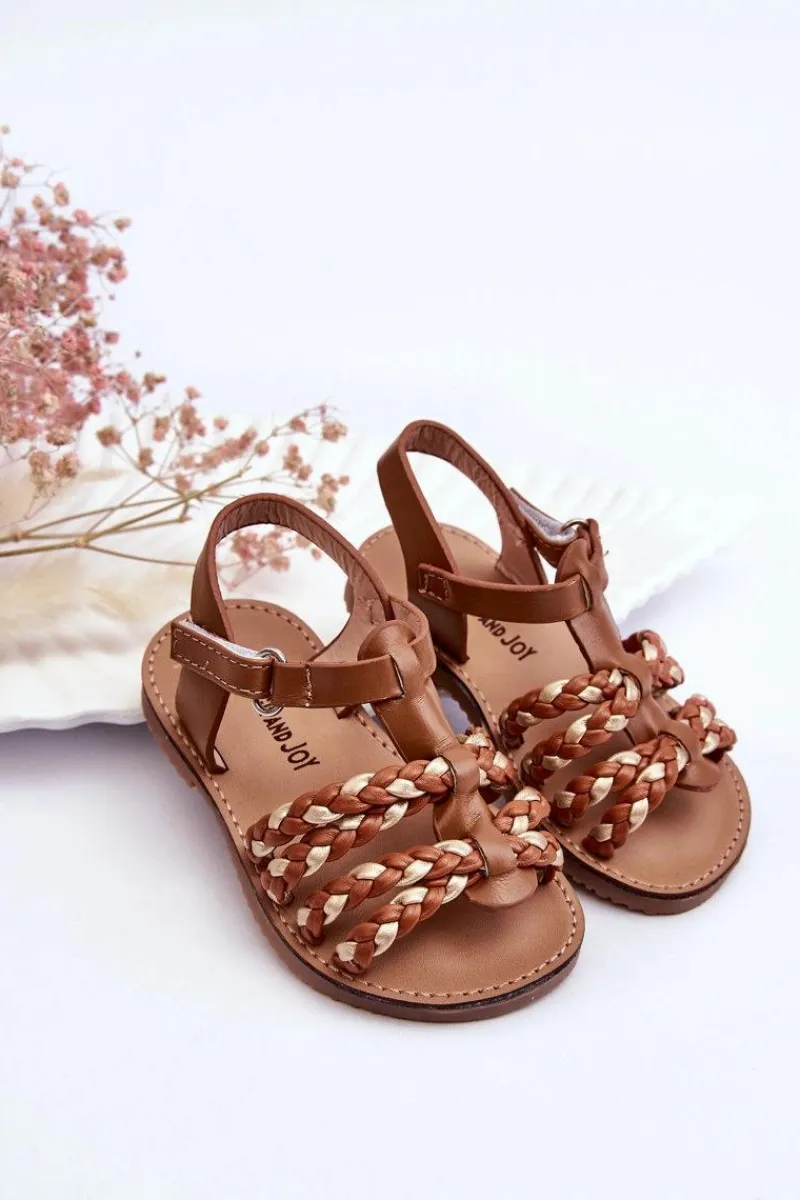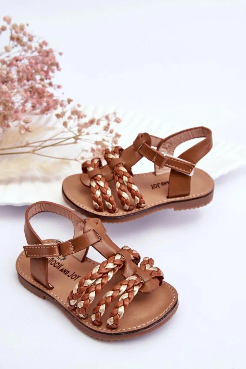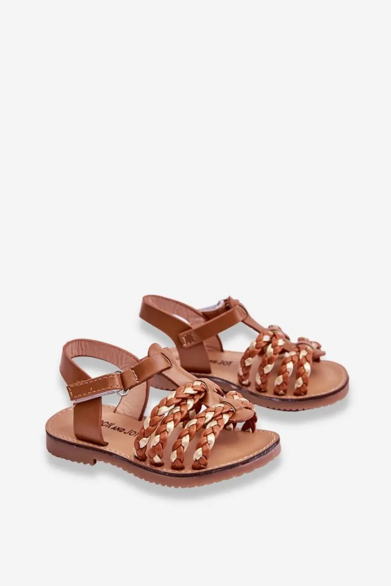Outlet Dziecięce Sandały Na Rzep Z Paseczkami Brązowe Sammy Dzieci Dziewczęce