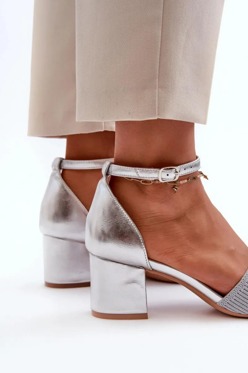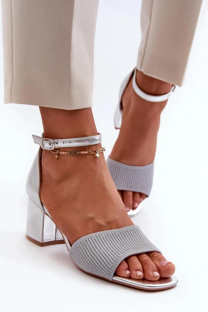 Outlet Evento Sandały Damskie Na Słupku Srebrne Desvia