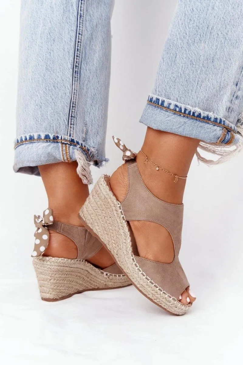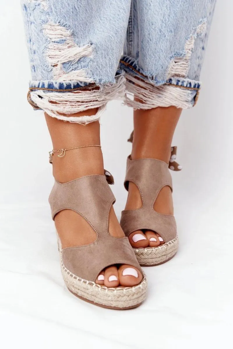 Piękne oraz wygodne sandały na koturnie. Buty posiadają antypoślizgową podeszwę oraz wyjątkową piankową wkładkę z technologią SOFT-AIR. Wkładka zapewnia doskonałe dopasowanie, absorbuje wstrząsy, jest odporna na odkształcenia oraz pozwala na odparowywanie wilgoci i regulacje temperatury. Modny fason z plecionką urozmaici wszystkie Twoje stylizacje! Koniecznie sprawdź całą naszą ofertę damskich sandałów! Przy wyborze rozmiaru prosimy sugerować się tabelą rozmiarów.